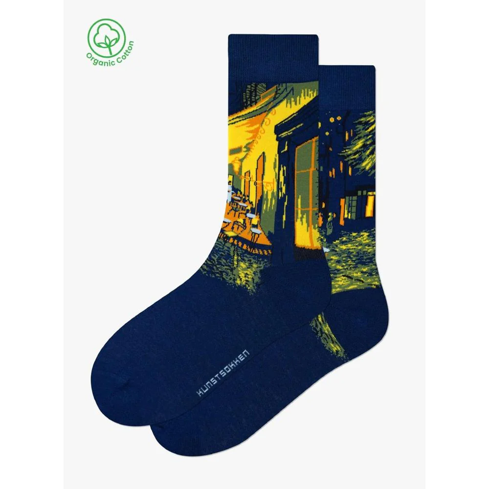 Beleef de warme, levendige sfeer van Van Gogh’s ‘Caféterras bij Nacht’ met deze kunstzinnige Kunstsokken.