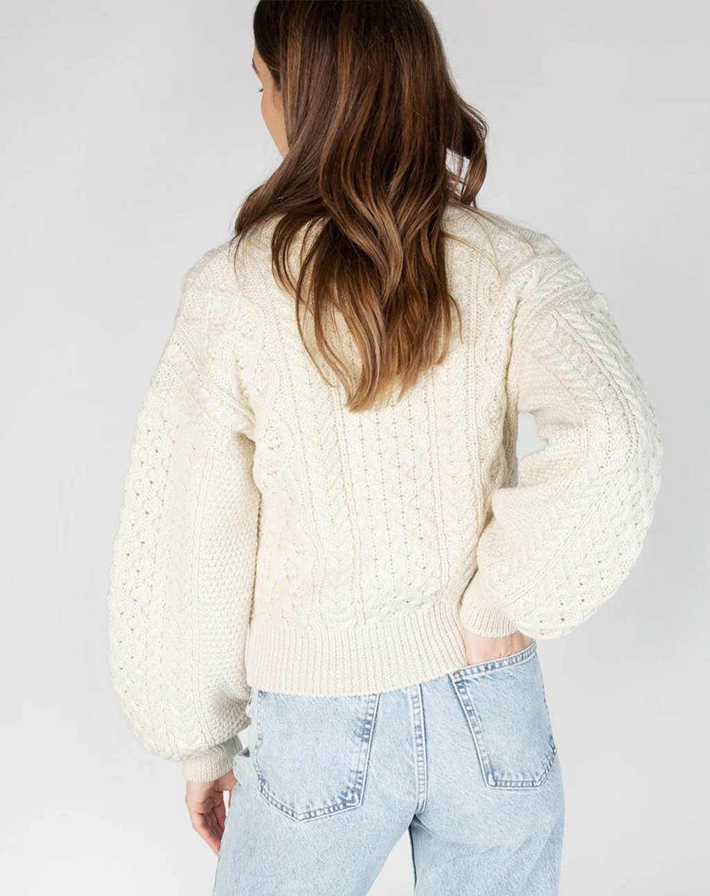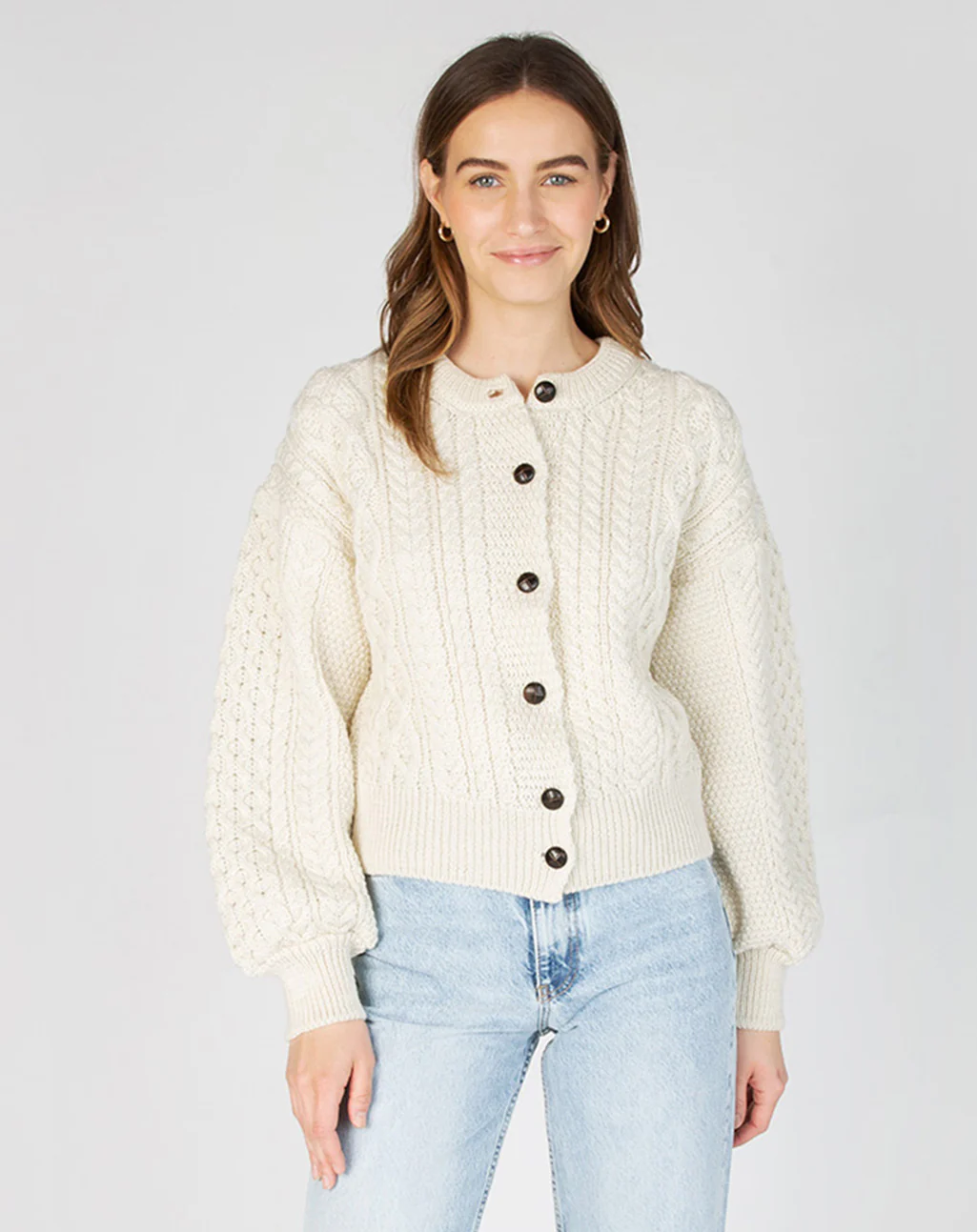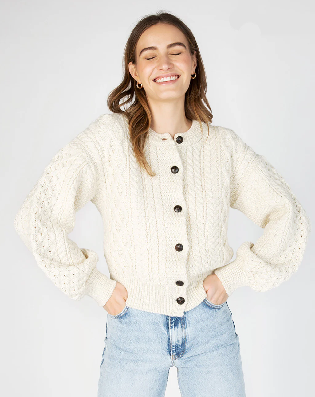 Met de Clover Cropped Aran Cardigan breng je een eerbetoon aan de Ierse breitraditie, maar dan met een moderne twist die het vest perfect maakt voor de modebewuste vrouw van vandaag.