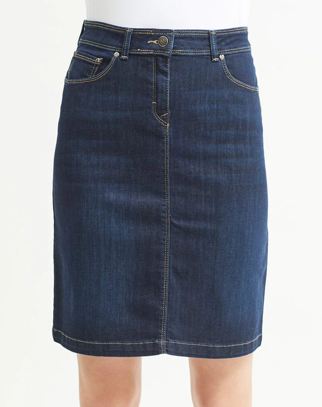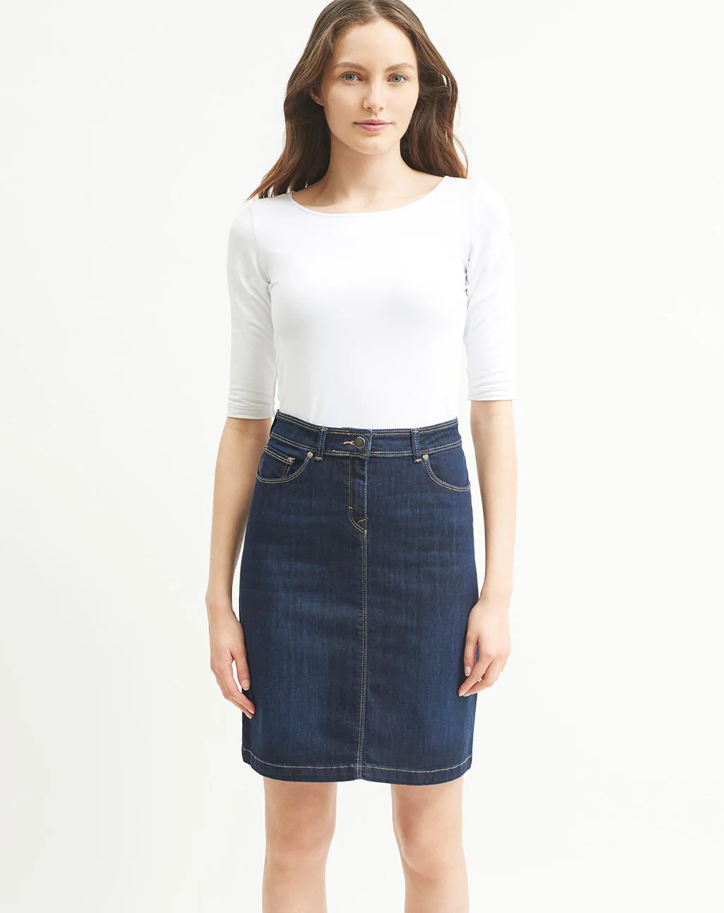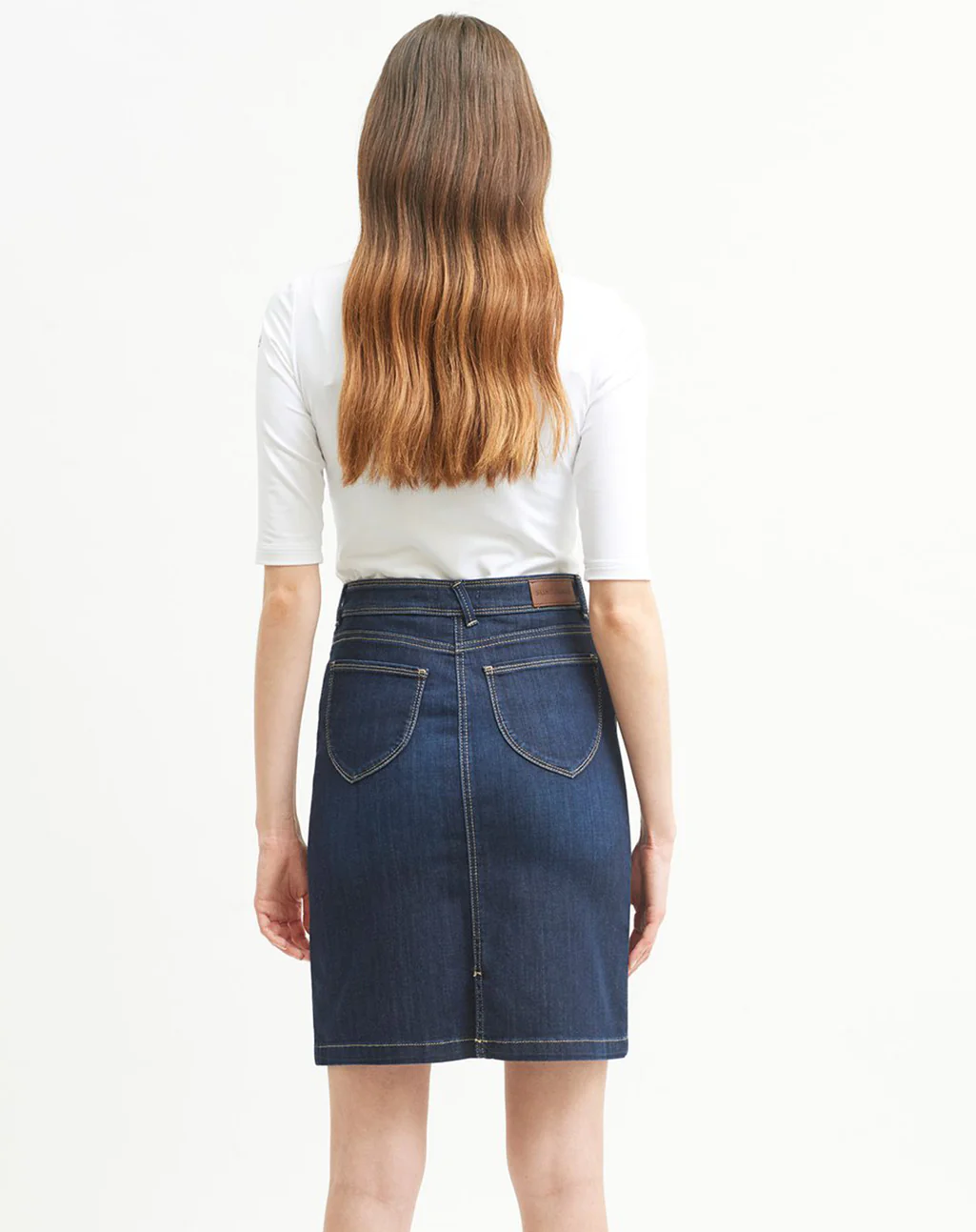 Een veelzijdige denim rok die perfect combineert met zowel casual als geklede outfits. Draag de Elfy rok met een blouse voor een elegante look of met een T-shirt voor een nonchalante uitstraling