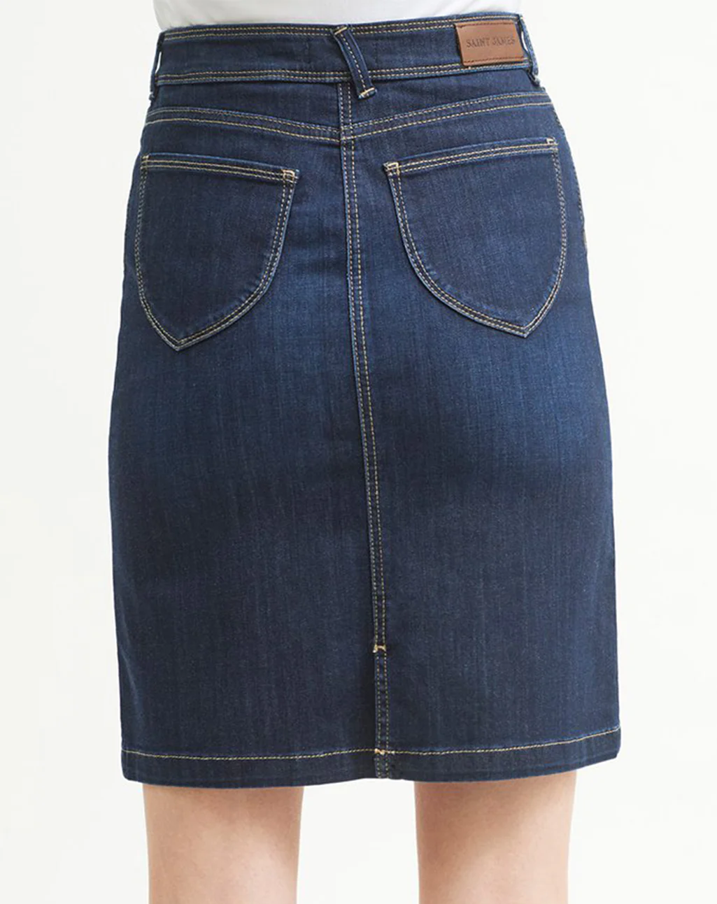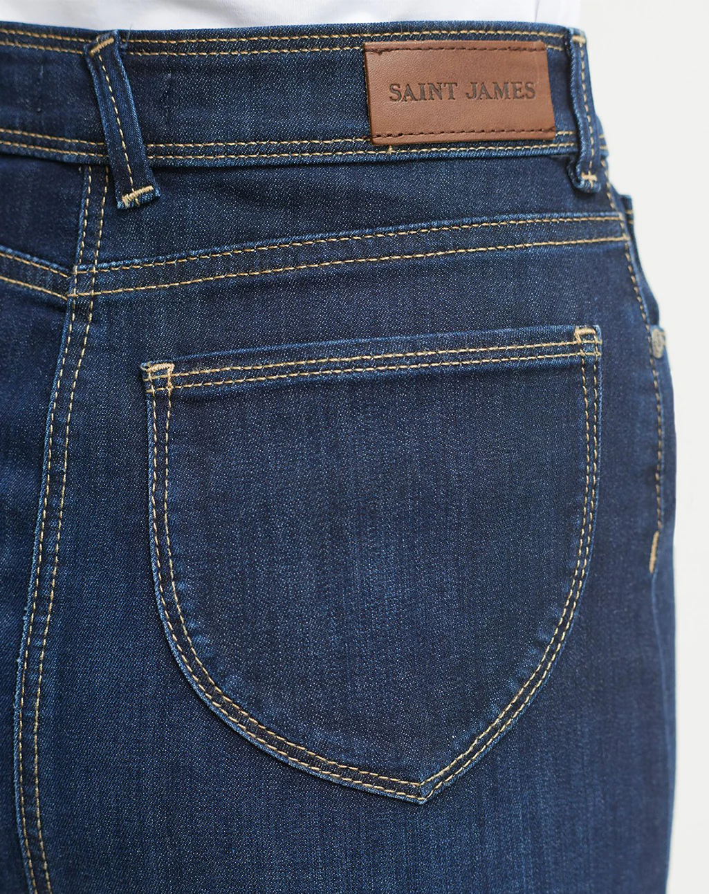 De Elfy denim rok van Saint James combineert moeiteloos een casual denim look met de tijdloze elegantie van het merk. Dankzij de rechte snit en een lengte van 55 cm creëert deze rok een flatterende en veelzijdige uitstraling.