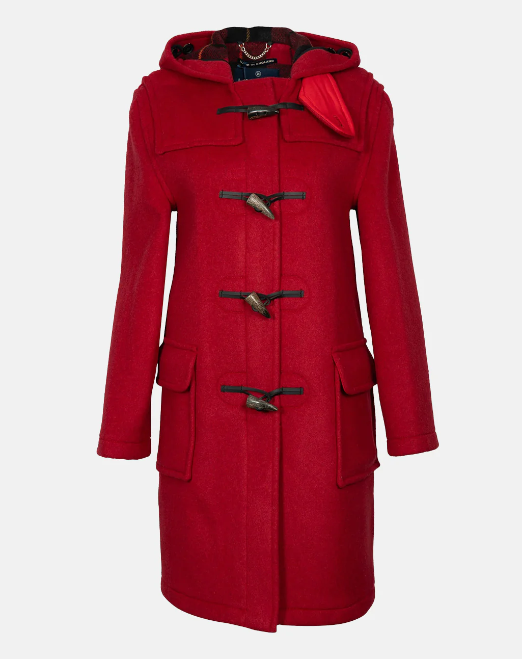 Vervaardigd van een dubbelzijdige wolmix met een geruite voering, combineert deze jas warmte en comfort met een uitgesproken stijl. De authentieke houtje-touwtjesluiting bestaat uit buffelhoornknopen en leren lussen, terwijl de capuchon en ruime klepzakken zorgen voor extra bescherming en functionaliteit.