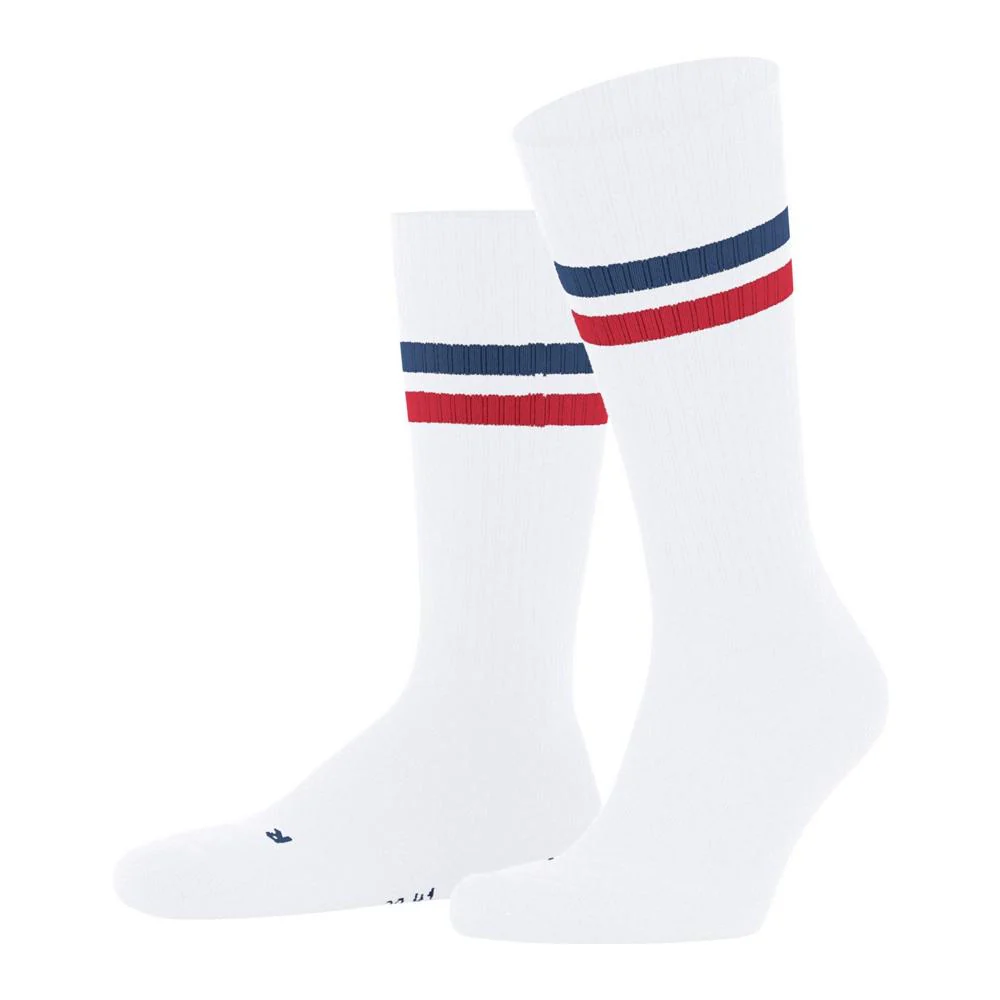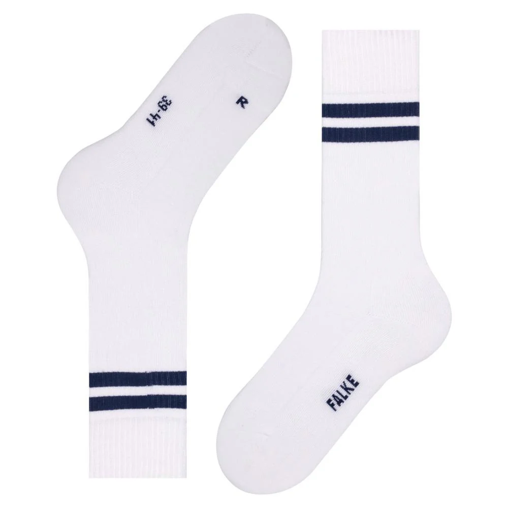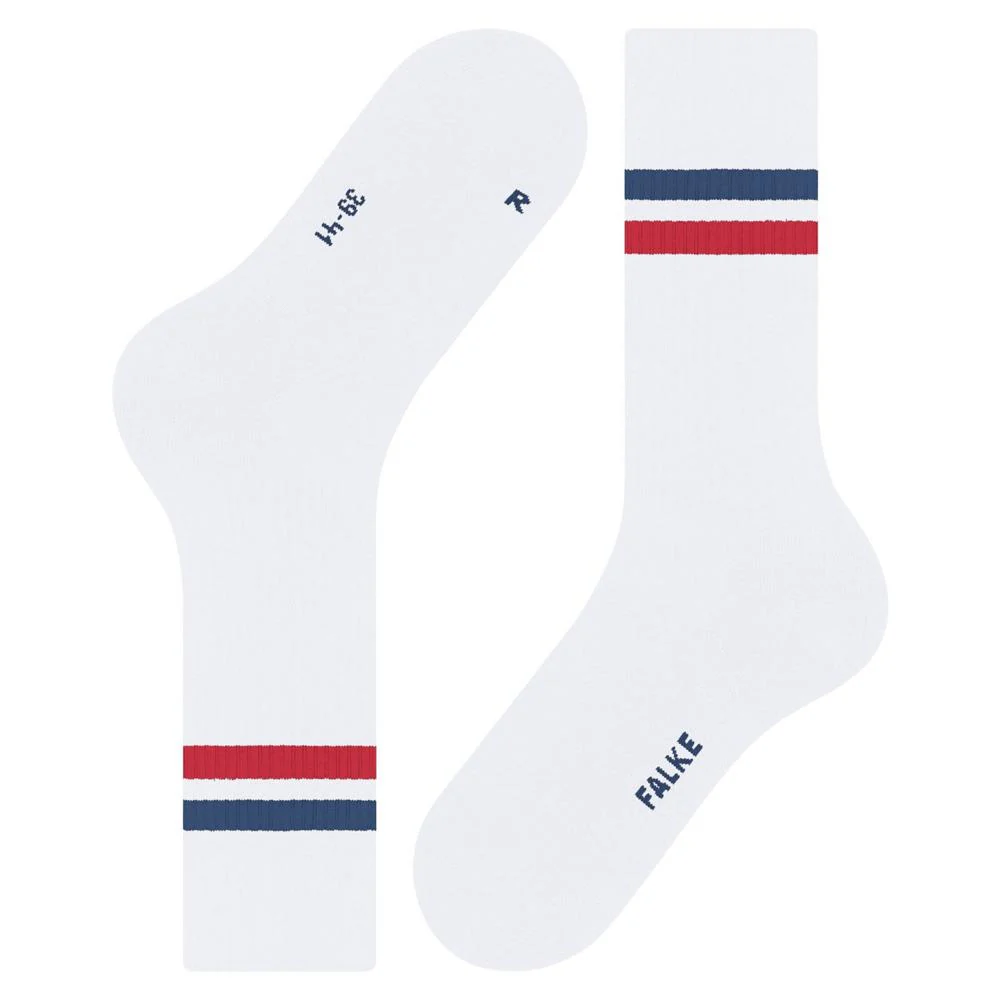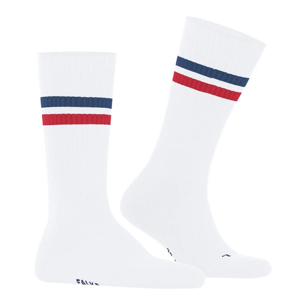 Het sportief geïnspireerde design met retro strepen en het gebreide FALKE-logo op de achterkant,