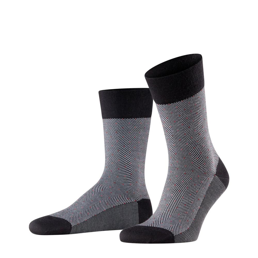 Bij deze Falke herensokken van Merinowol, staat het traditionele visgraatpatroon centraal.