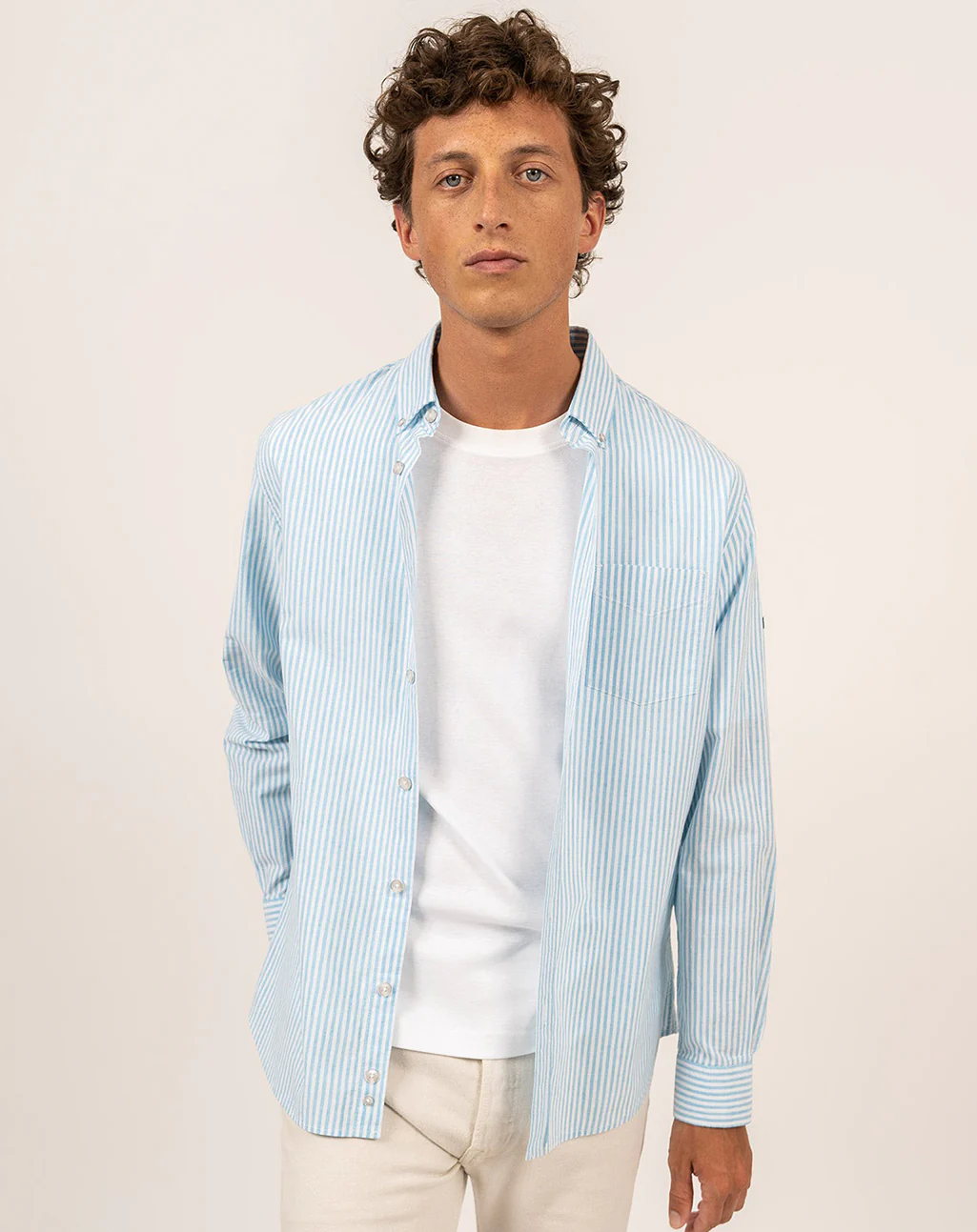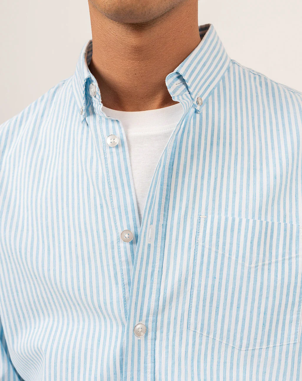 Onmisbaar in elke herengarderobe, het gestreepte overhemd. De Mathias is gemaakt van katoen en linnen waardoor het hemd licht en ademend aanvoelt. Dit comfortabele overhemd is comfortabel en perfect voor zonnige dagen.