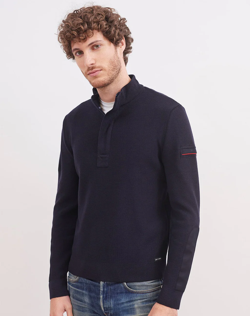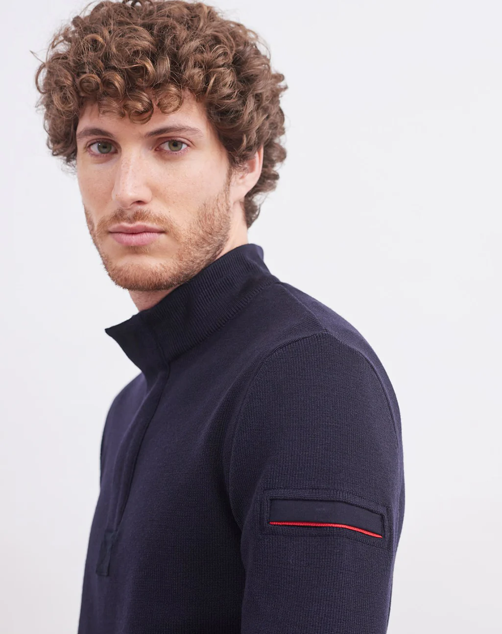 De Loup de Mer combineert klassiek breiwerk met een eigentijdse uitstraling. Een stijlvolle half-zip trui die zowel casual als gekleed gedragen kan worden.