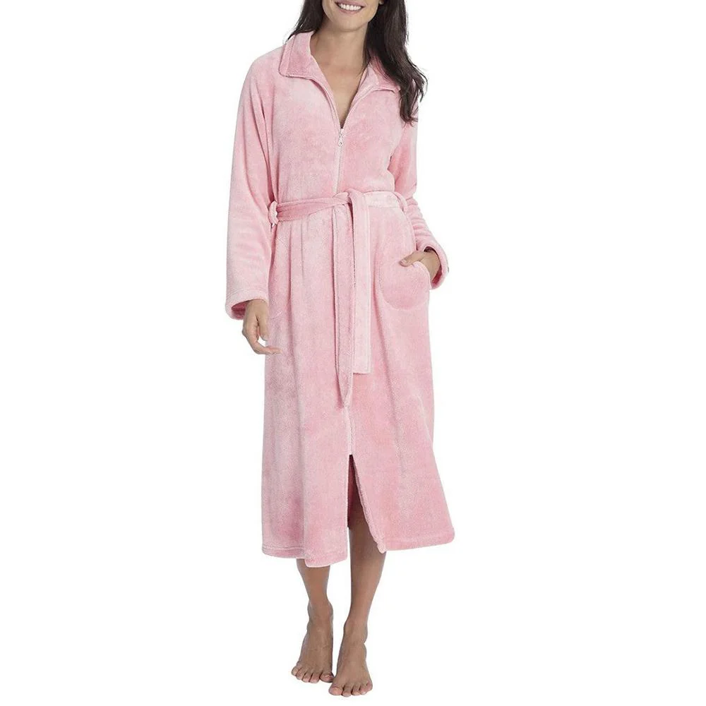 Deze zachte comfortabel dragende dames badjas heeft een rits over de gehele lengte.