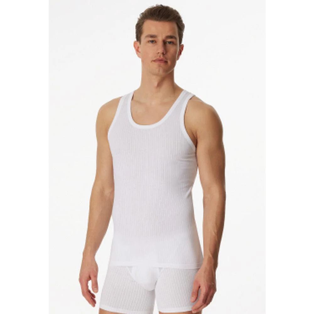 Deze Schiesser Authentic onderhemden in wit vormen een betrouwbare basis voor elke dag.