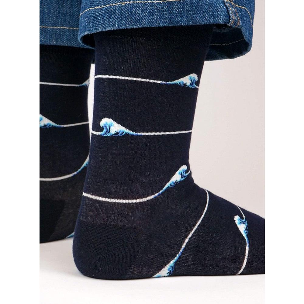De dramatische golf en de subtiele details van de beroemde print zijn meesterlijk geweven in deze comfortabele, biologisch katoenen Kunstsokken, perfect voor elke kunstliefhebber.