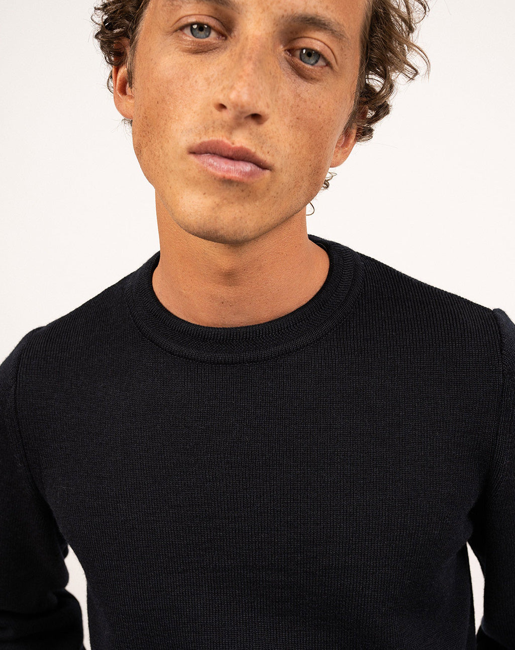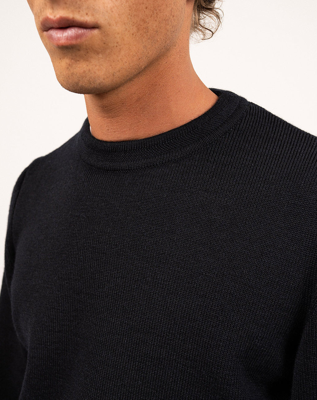 Met een regular fit en een ronde hals heeft de Locronan een tijdloze uitstraling. De subtiele fancy knit detail aan de kraag voegt een extra verfijnd accent toe, waardoor de trui zich onderscheidt door vakmanschap en elegantie. De 1/2 cardigan rib structuur zorgt voor een robuuste, maar soepele pasvorm die prettig aanvoelt en goed in vorm blijft.
