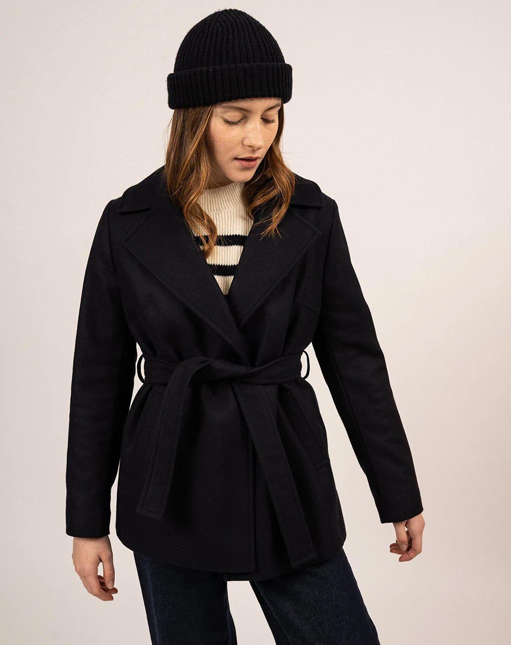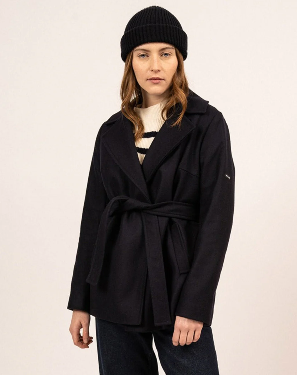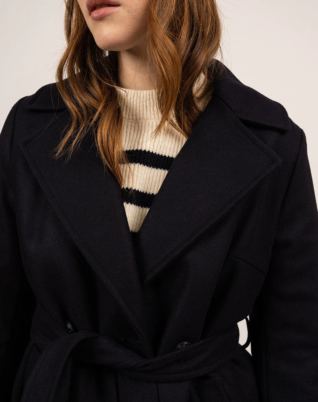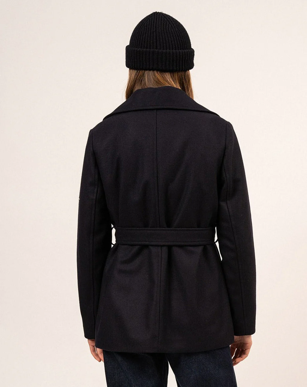 Korte peacoat met ceintuur en maritieme voering