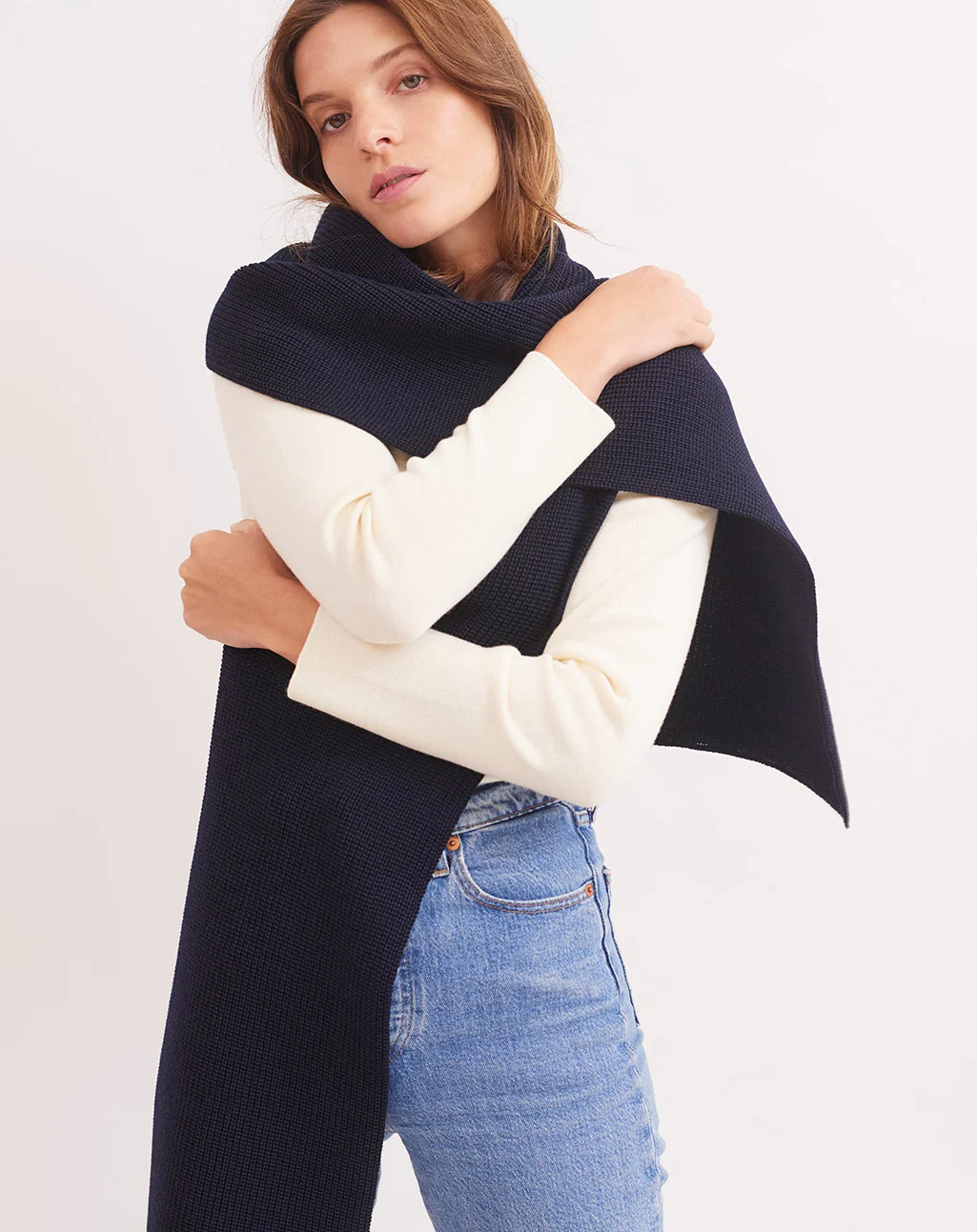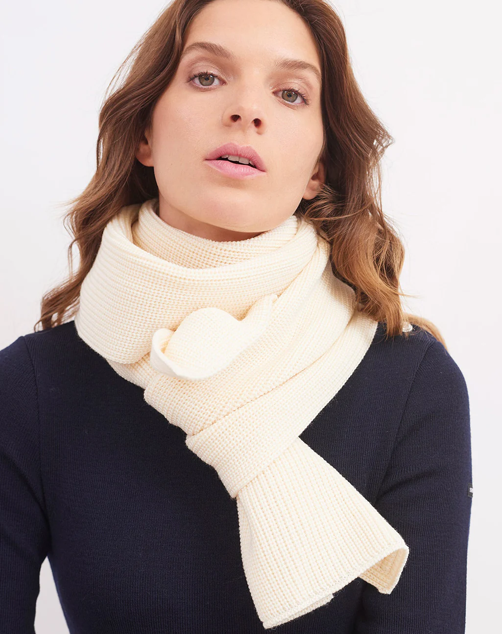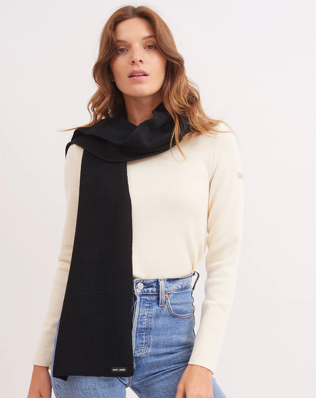 De zuiver wollen sjaal van Saint James is ontworpen tegen de kou en gemaakt om lang mee te gaan. De sjaal is 180 cm lang en heeft een patentsteek.