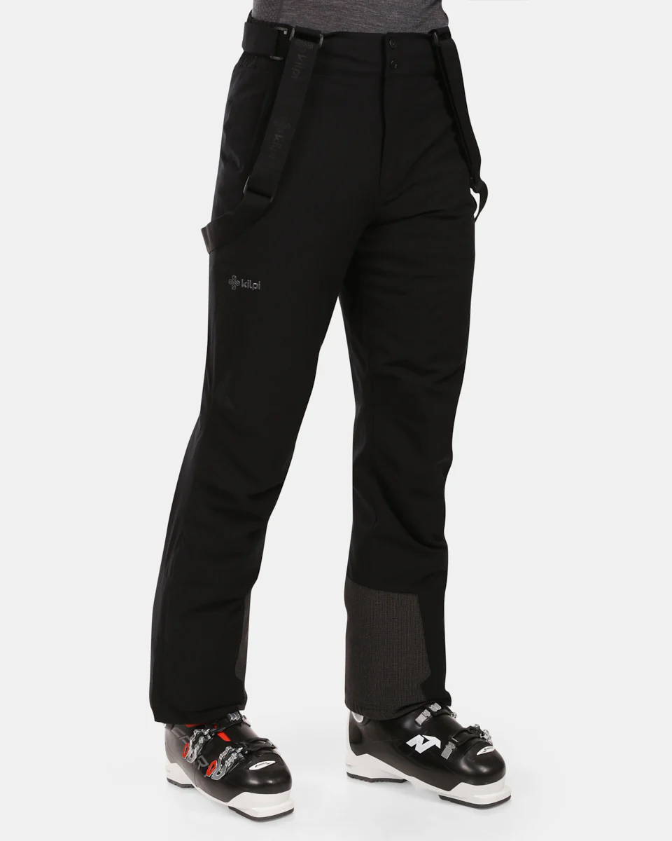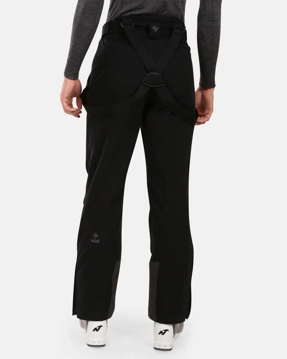 Men’s ski pants, stretch water repellent material, seam taping, detachable adjustable braces, snow cuffs, lower leg are reinforced with burly, abrasion resistant material, 2 front pockets and back pocket with zipper, reflective detail