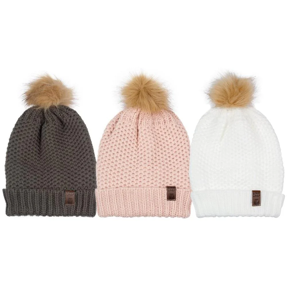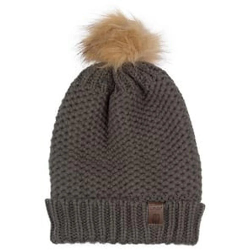 Bovenop pronkt een elegante imitatiebont pompon,