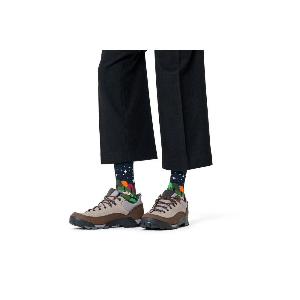 Rij de nacht in met stijl. De Night Driving Sock van Happy Socks brengt je direct naar een kleurrijke nachtelijke autorit tussen grafisch gevormde bomen en een sterrenhemel vol fonkelende stippen.