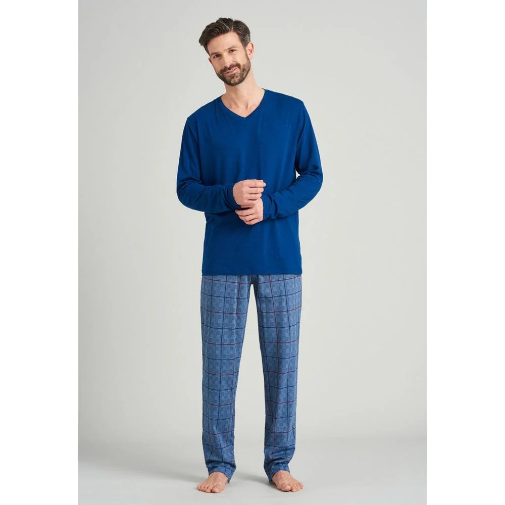 Lange, geruite herenpyjamabroek of loungebroek van Schiesser,