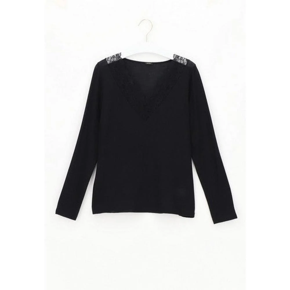 Shirt met V-hals en kanten details uit de Perfect Line Cashmere collectie.