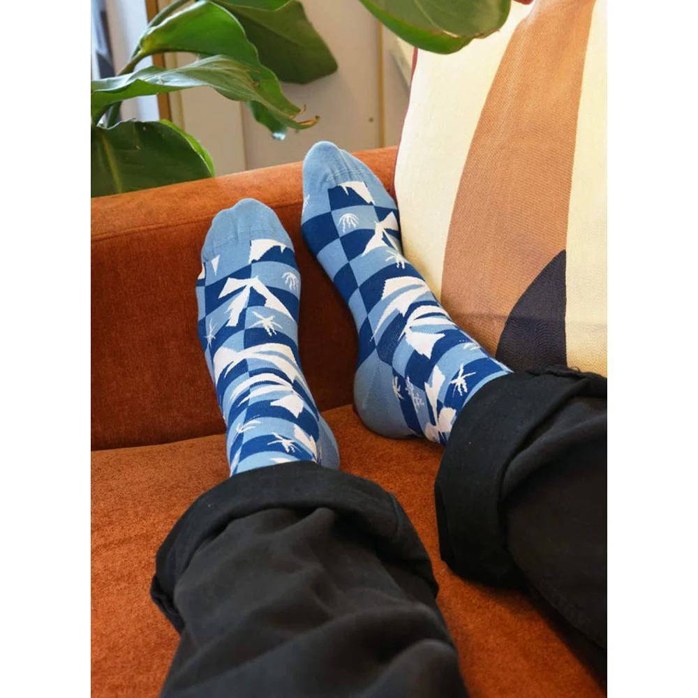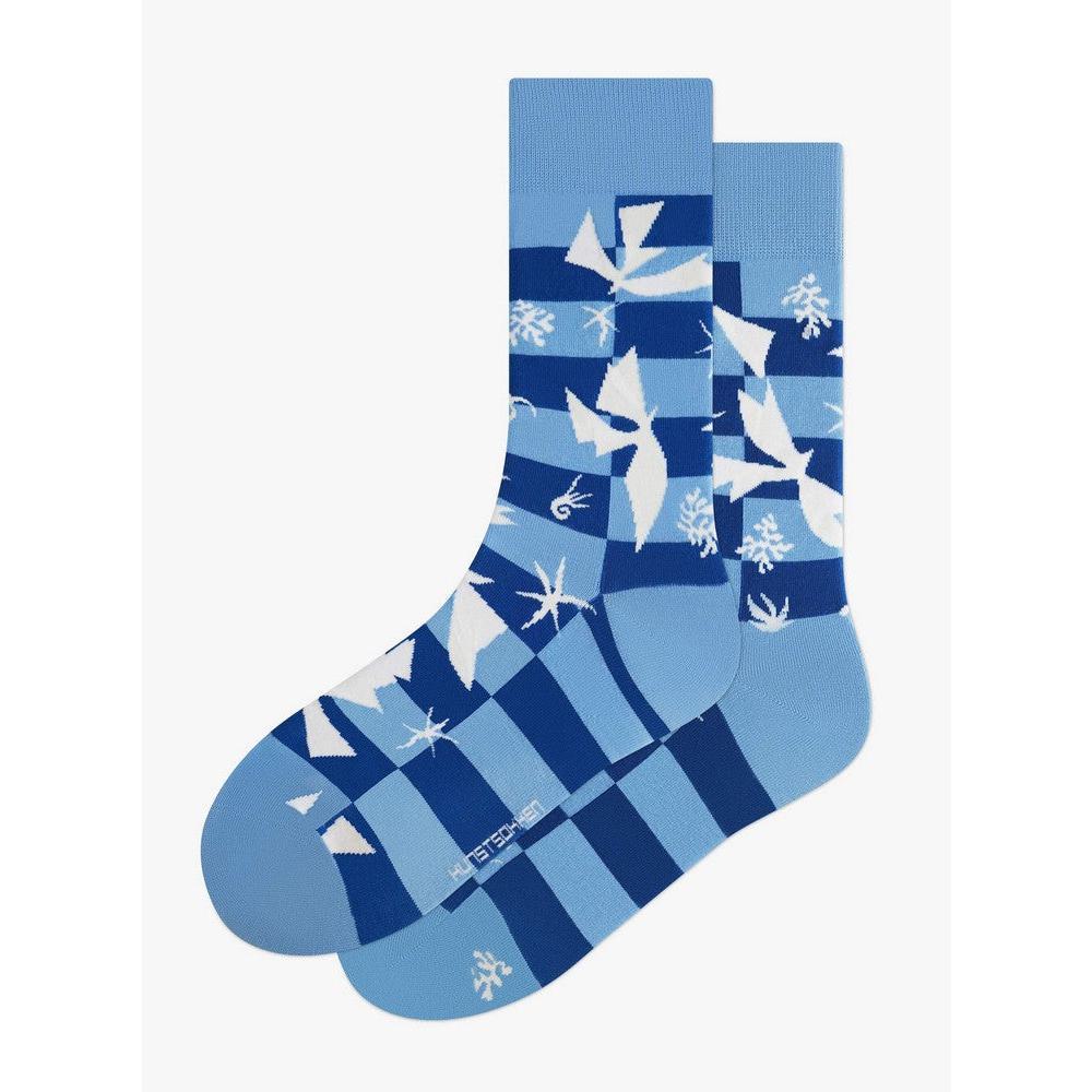 De ‘Polynesië, de Hemel’-sokken brengen het iconische knipwerk van Henri Matisse (1946) tot leven – een meesterwerk dat hij creëerde na zijn reis naar Tahiti.