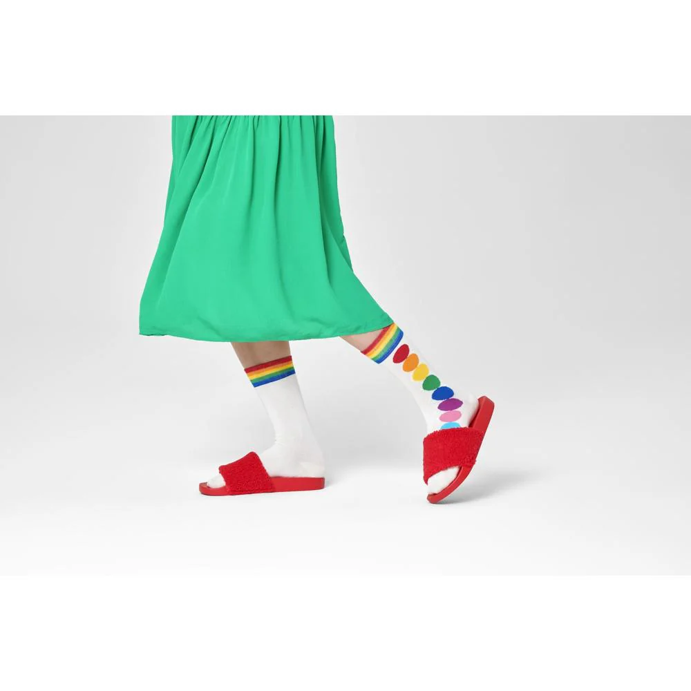 Happy Socks met stippen in de regenboogkleuren,