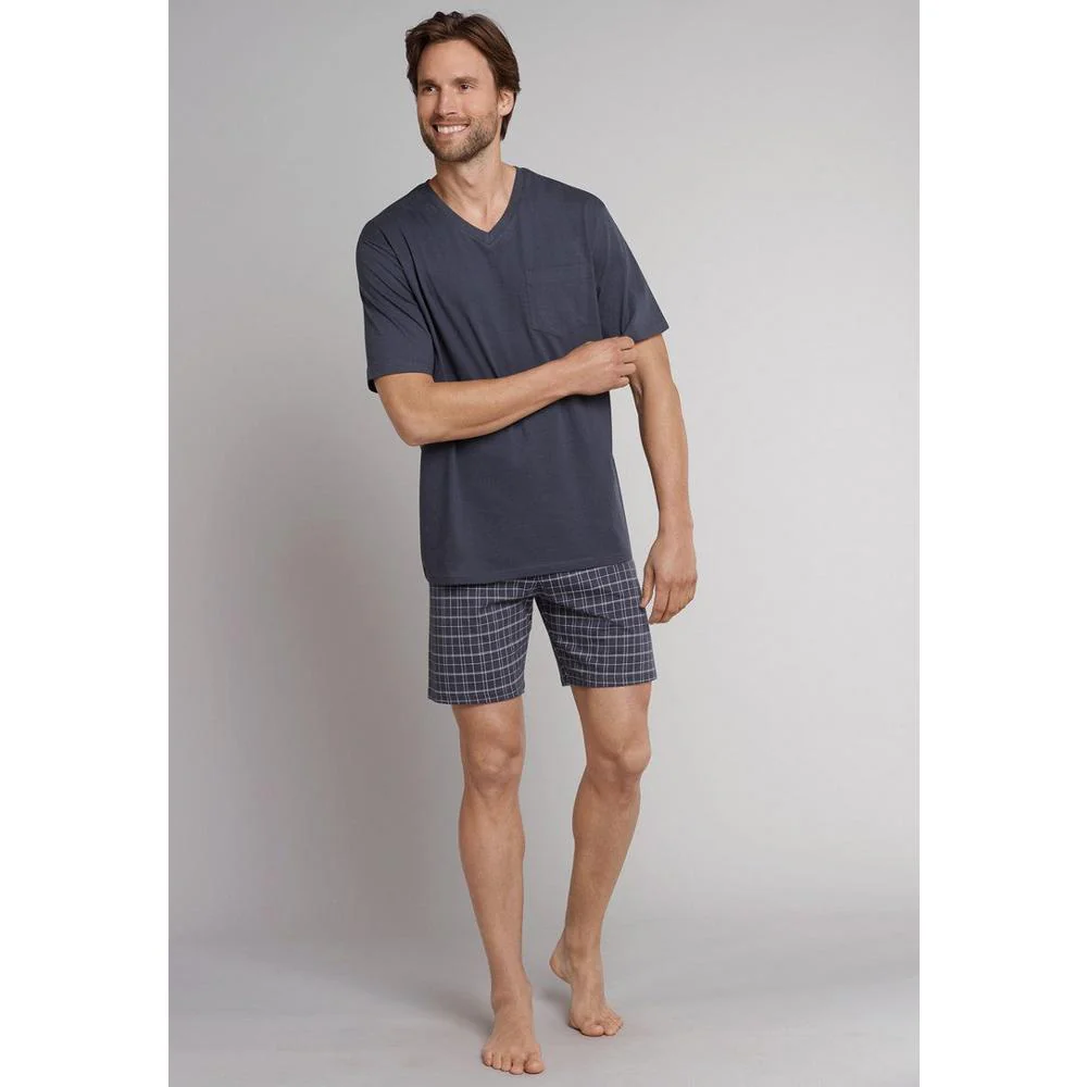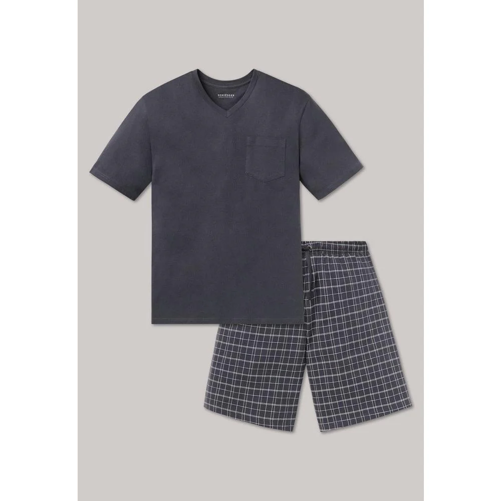 Schiesser Ebony Shortama – Heren Pyjama Kort van 100% Katoen