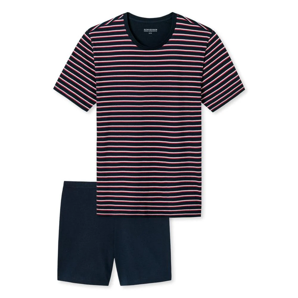 Ervaar natuurlijke zachtheid en klassieke eenvoud met de Schiesser herenpyjama – perfect voor warme dagen.