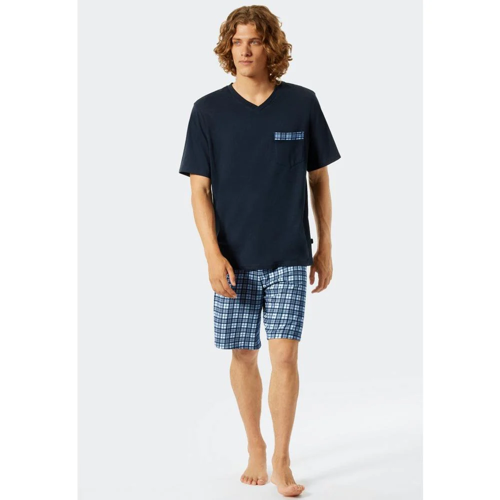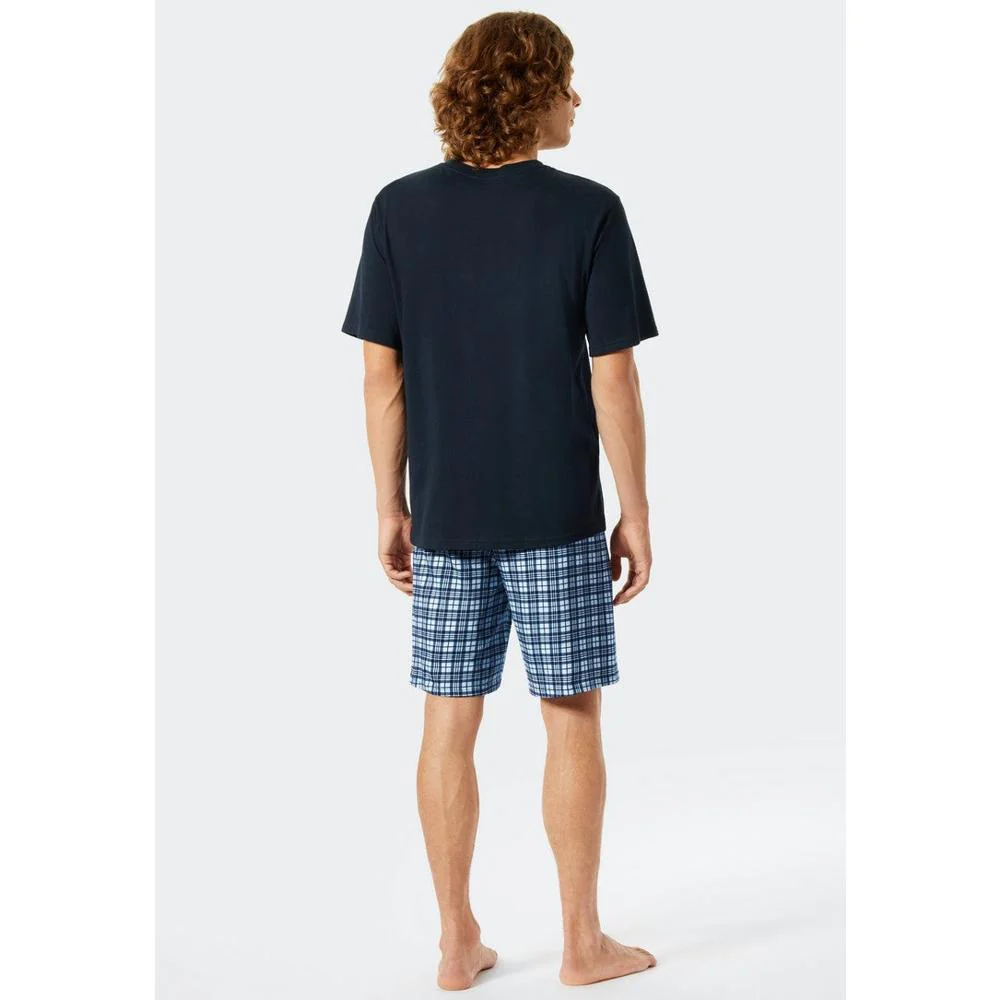 Verheug u op aangename nachten in deze korte herenpyjama met een mannelijk ruitjesmotief.