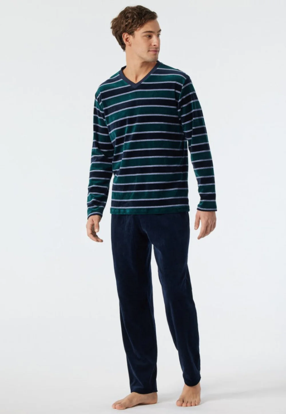 Lange Schiesser pyjama set voor heren met gestreept shirt,uit de Schiesser-serie “Warming Nightwear”.
