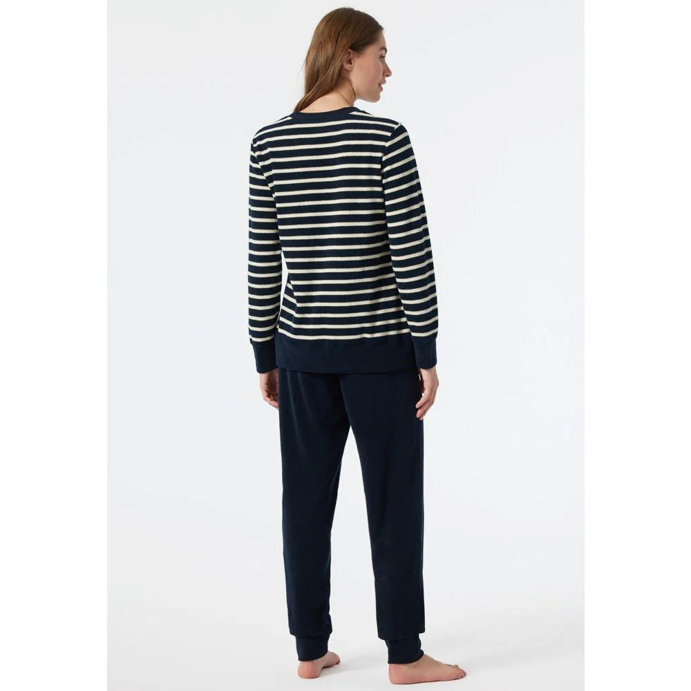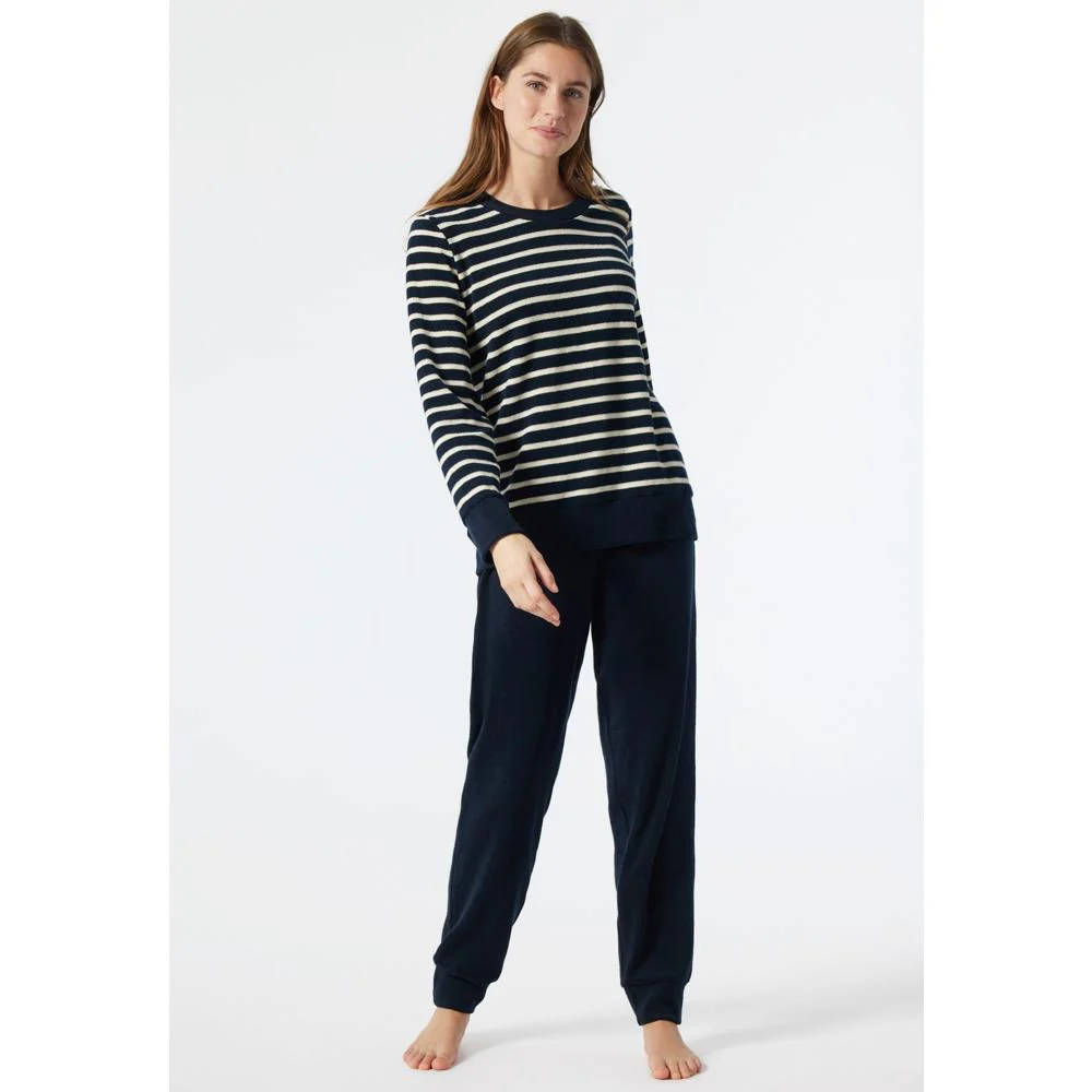 Lange 100% katoenen pyjamaset voor dames, uit de Schiesser-collectie “Essential Stripes”.