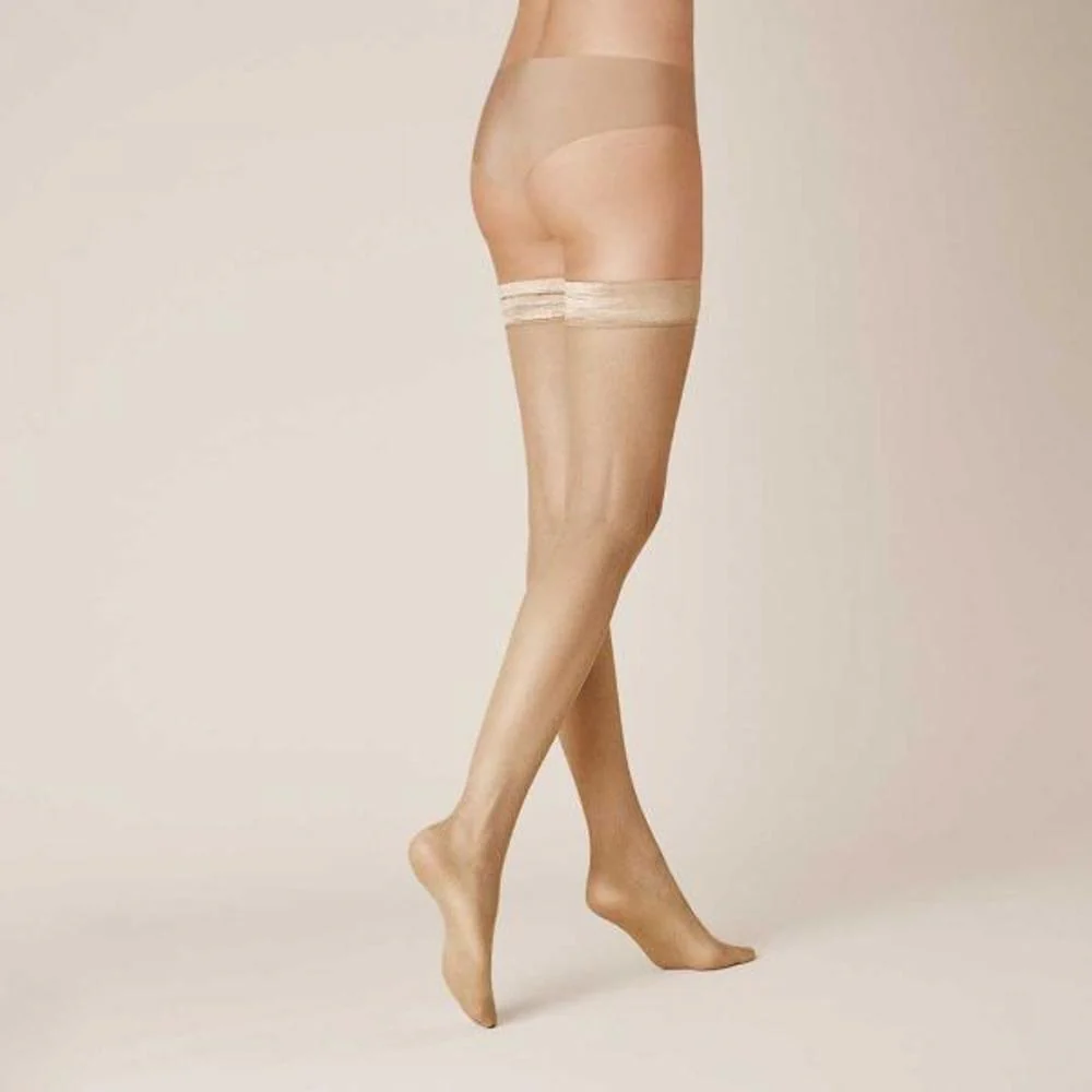 De brede band met siliconenstrip houdt de kousen stevig op hun plaats zonder af te zakken.