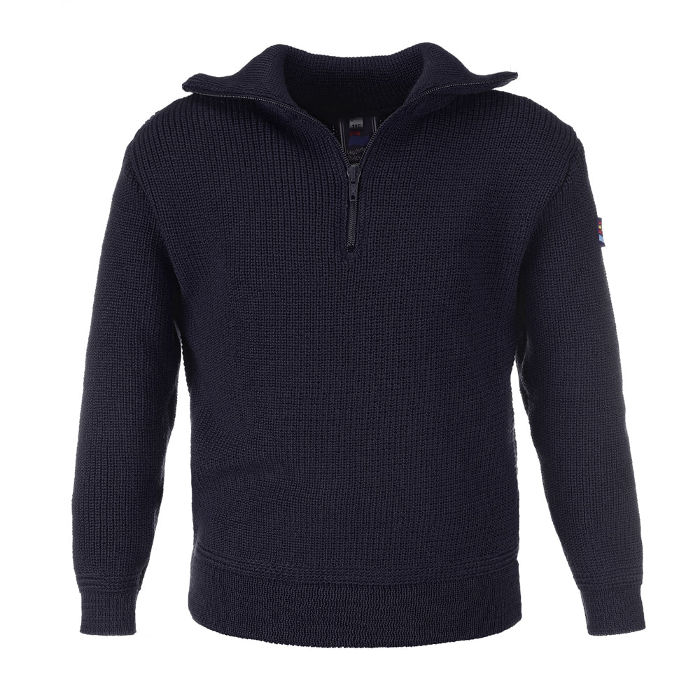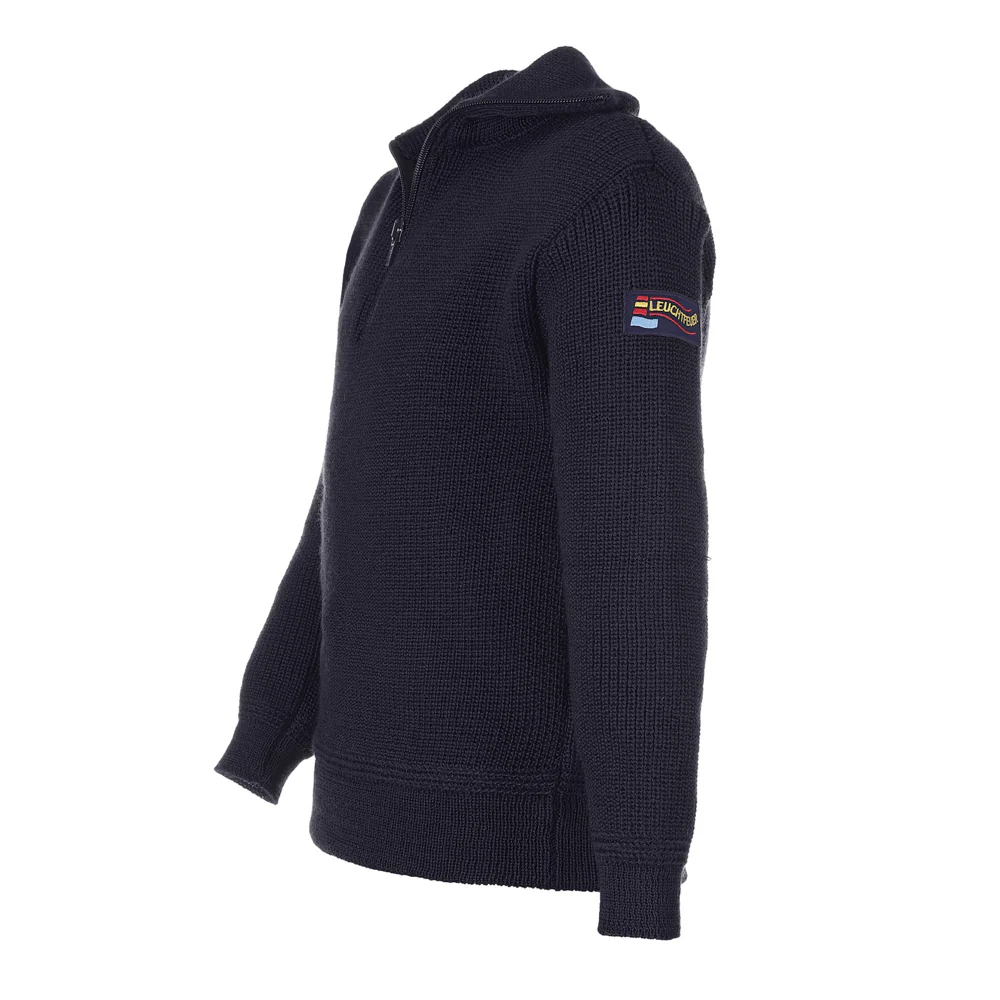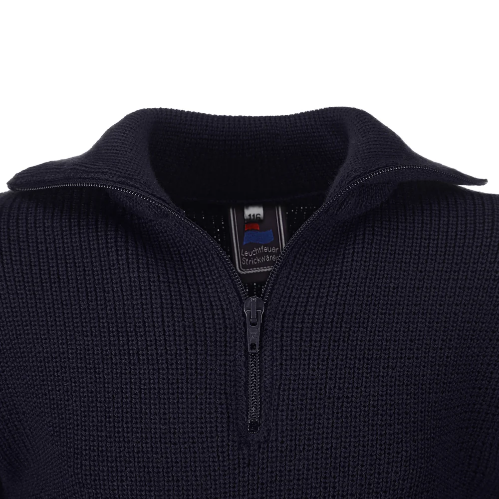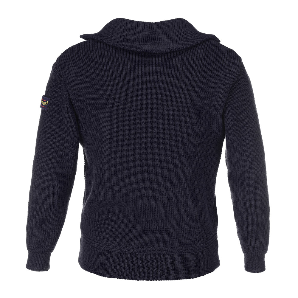 Stoere, dikke schipperstrui gemaakt van kamgaren met een ritssluiting aan de voorkant en heeft dubbele mouwmanchetten. De trui is machine wasbaar en vormvast.
