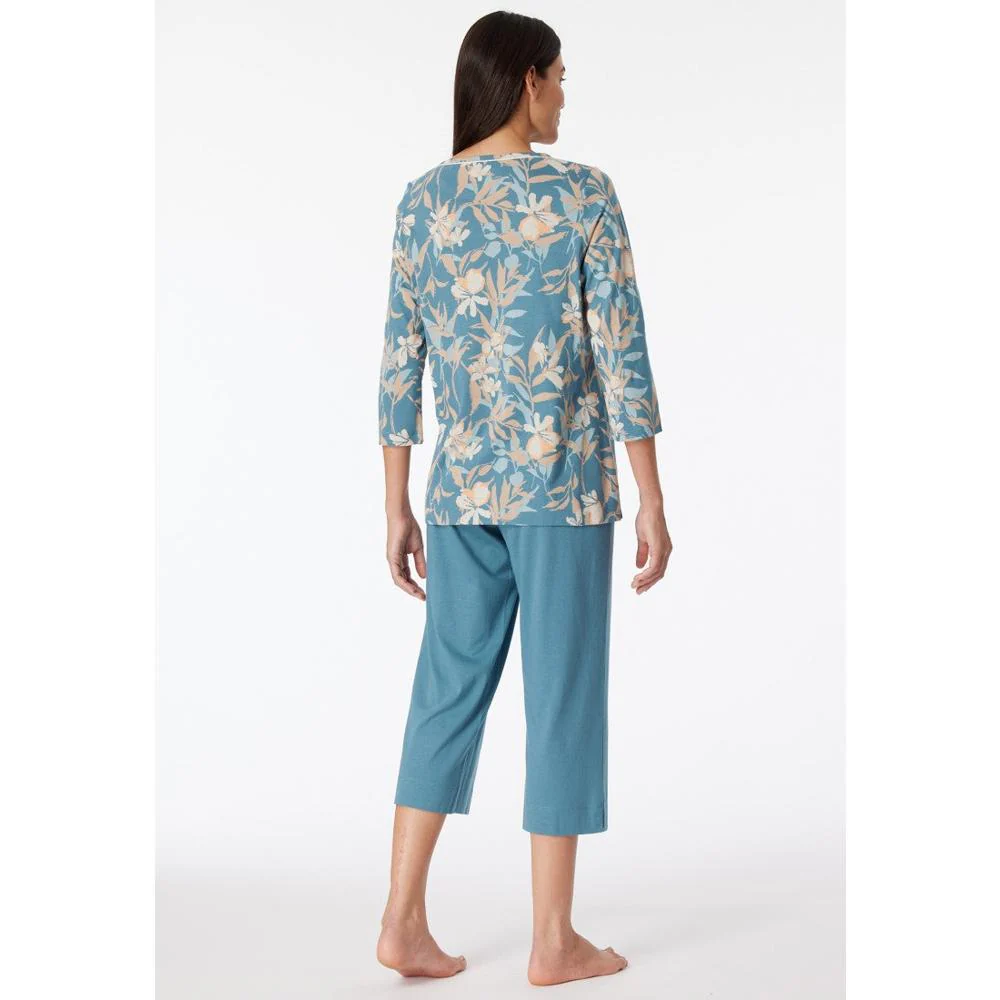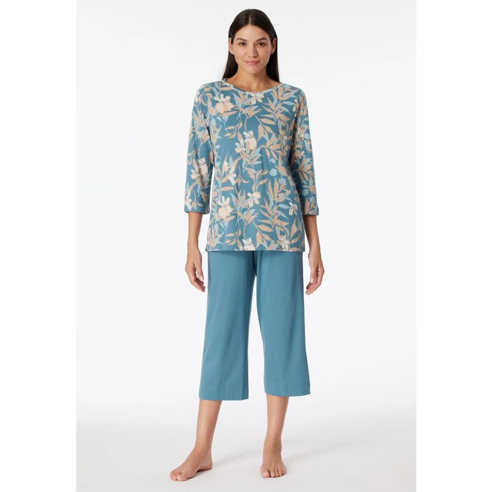 Deze damespyjama set, met 3/4-broek en gebloemd shirt in multicolour komt uit de SCHIESSER “Comfort Nightwear”-collectie.