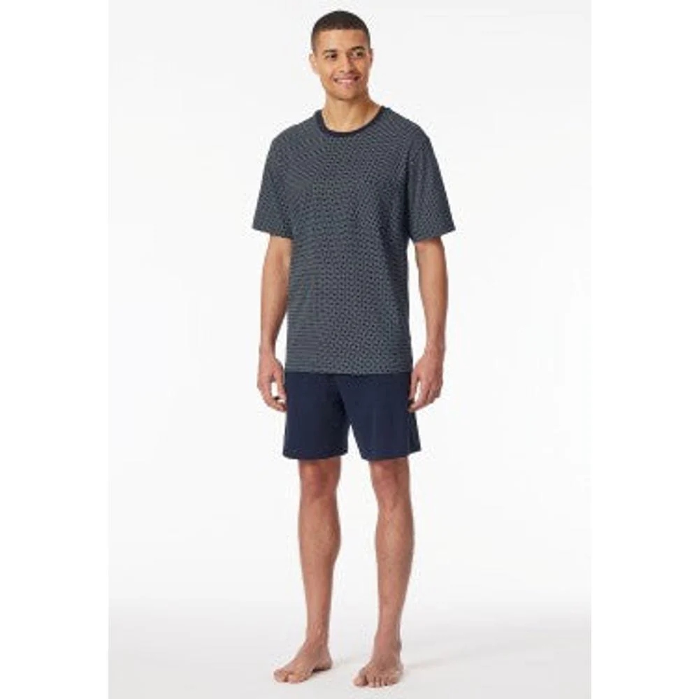 - korte, nachtblauwe heren pyjama met patroon Top