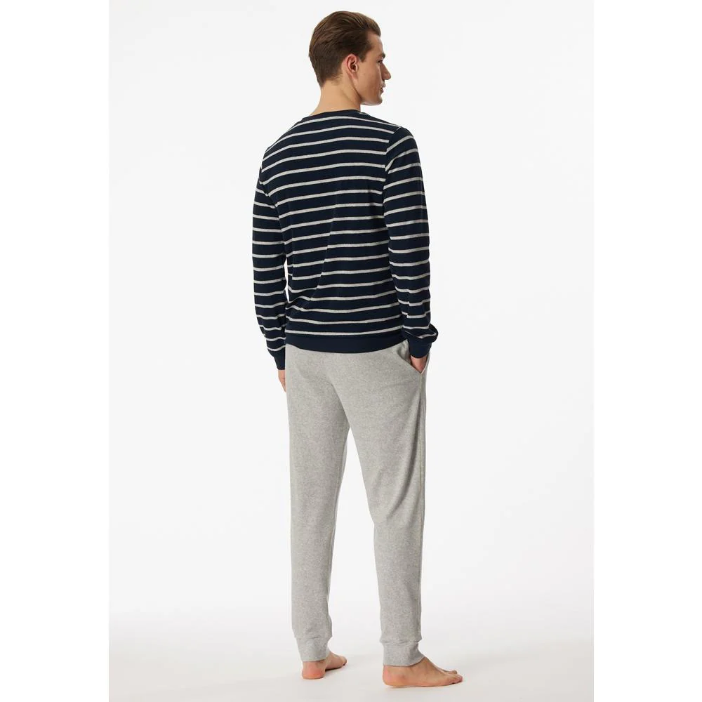 Het gestreepte shirt in grijze en nachtblauwe tinten uit de “Warming Nightwear” serie van SCHIESSER,