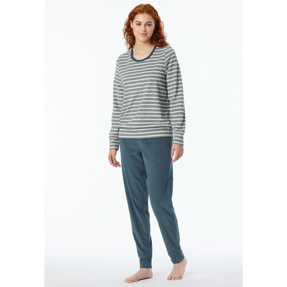Schiesser dames pyjama lang frottee streepjes – Casual Essentials