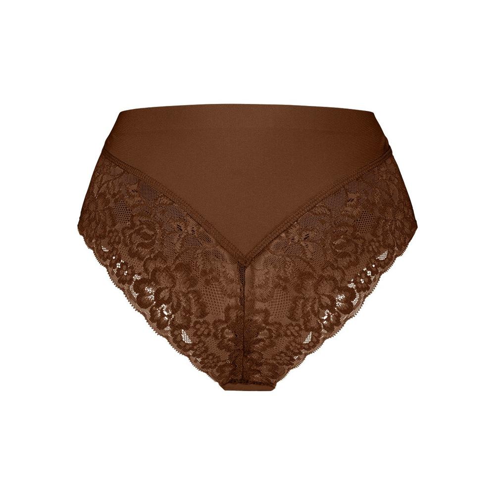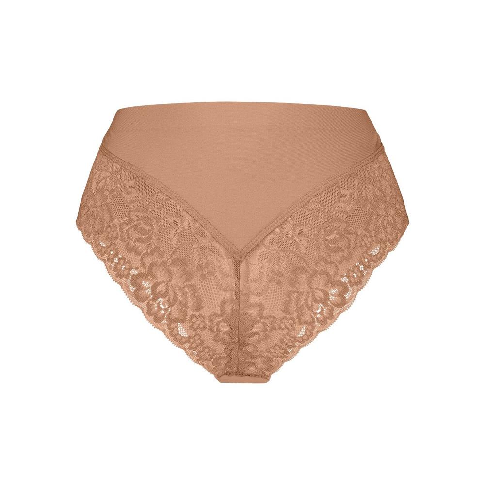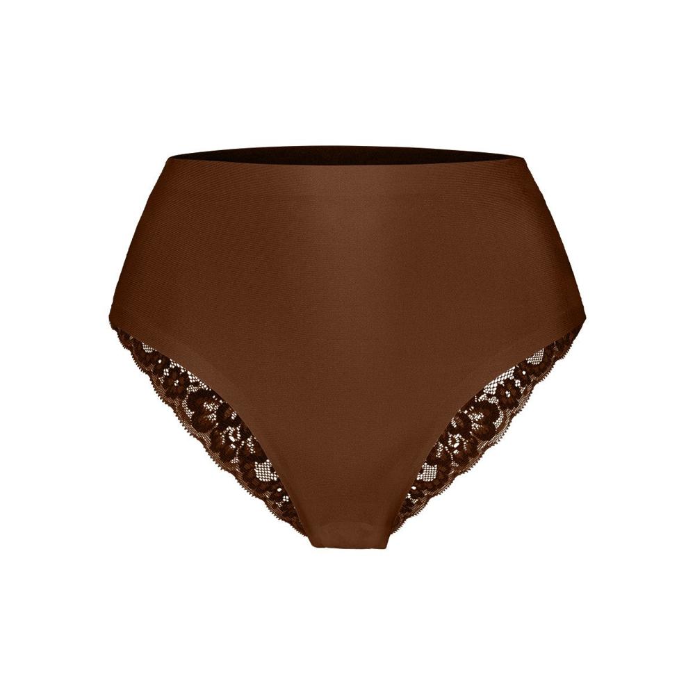 hierdoor draag je de high waist brazilian met kant als een tweede huid onder je kleding.