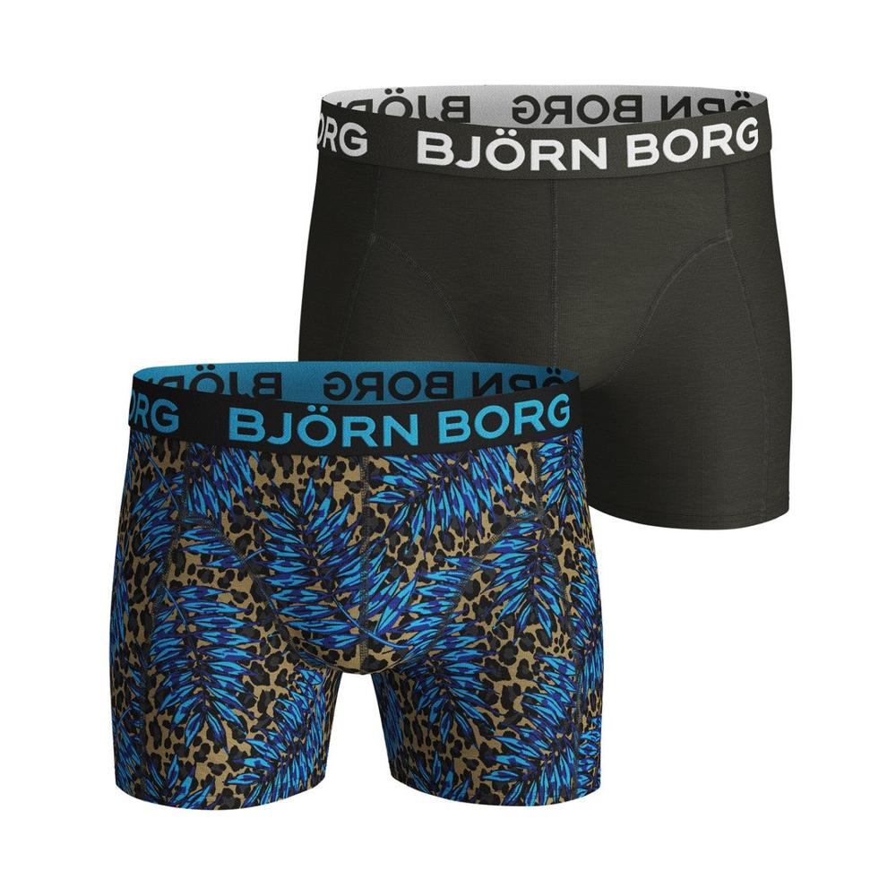 2 katoenen boxers, 1 met print in tijger / blad en 1 in het zwart.