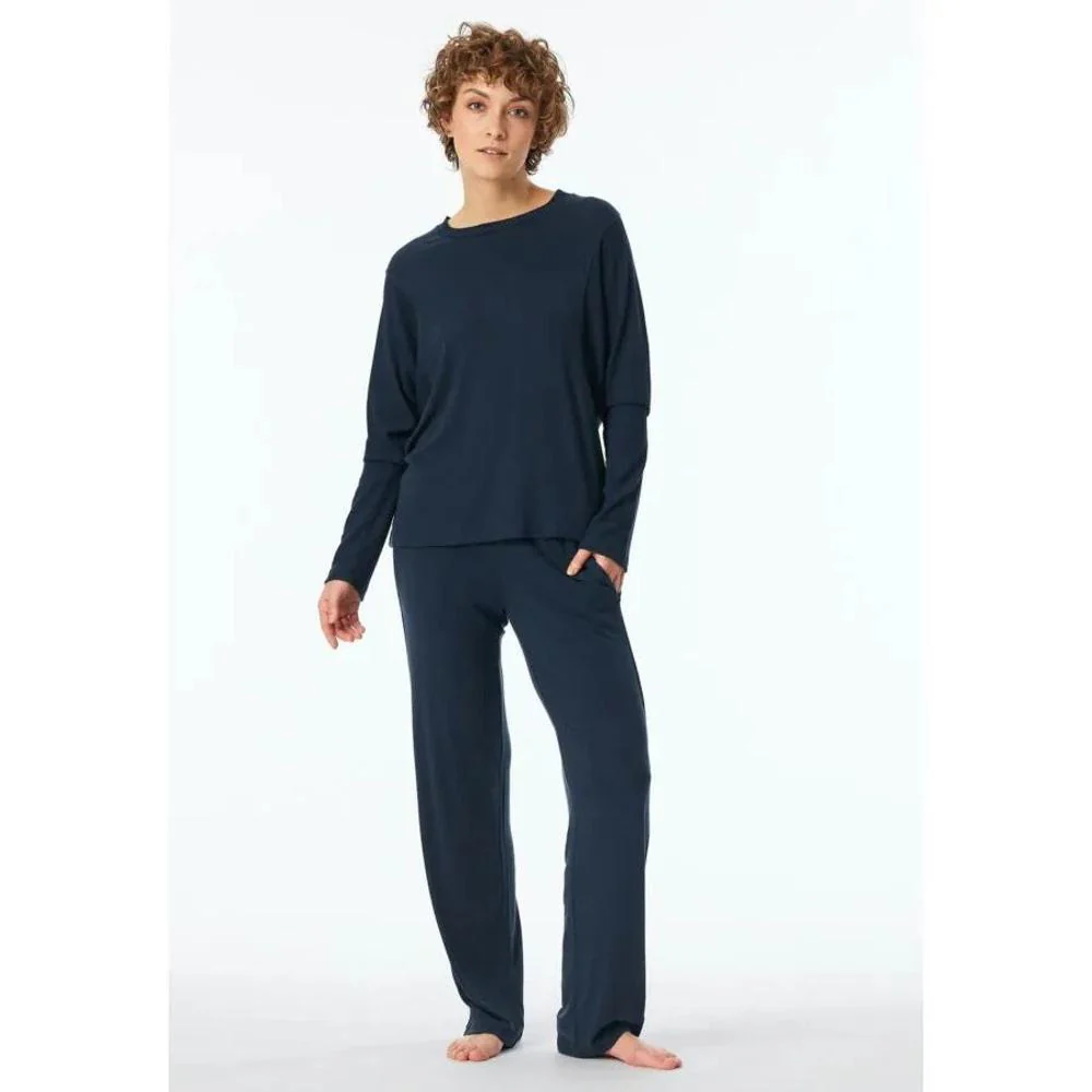 Ontspan in stijl met deze nachtblauwe dames sweater uit de geliefde Mix & Relax-collectie van SCHIESSER.