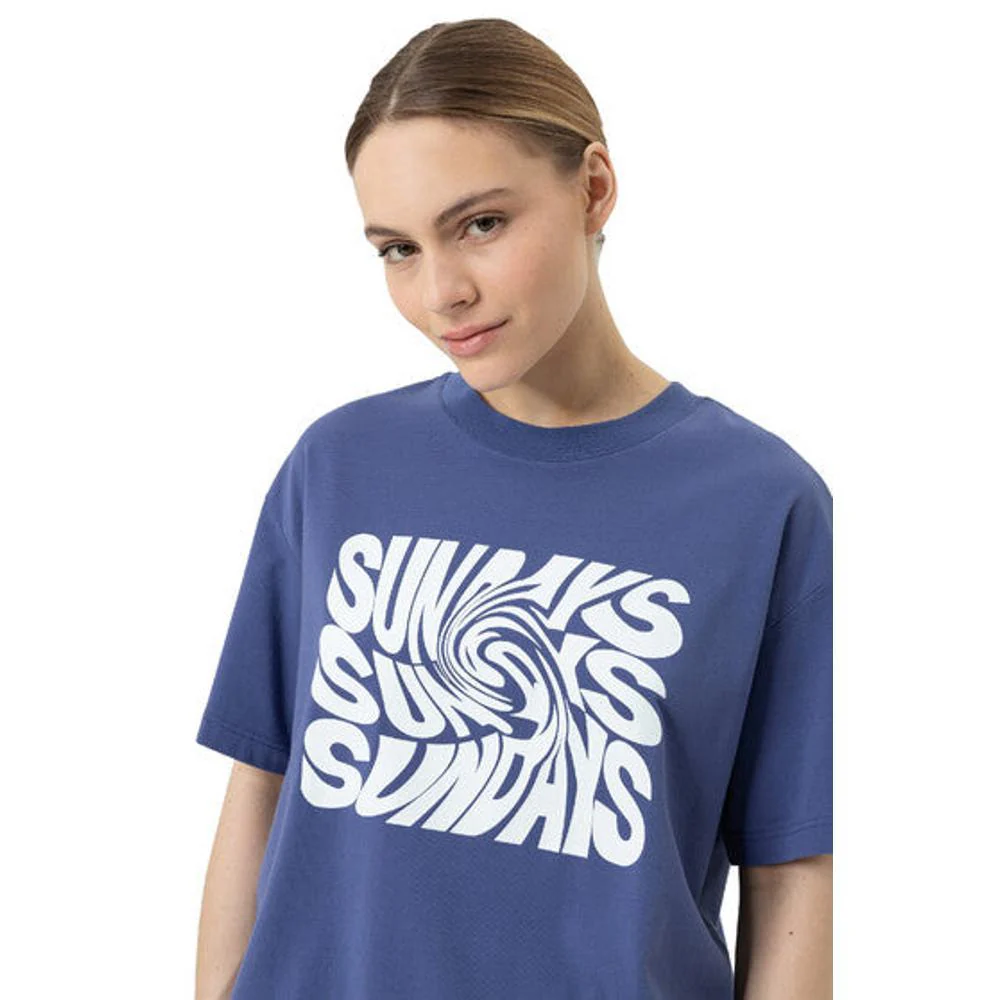 De opvallende “SUNDAYS”-print zorgt voor een moderne, grafische look die dit shirt tot een echte blikvanger maakt.