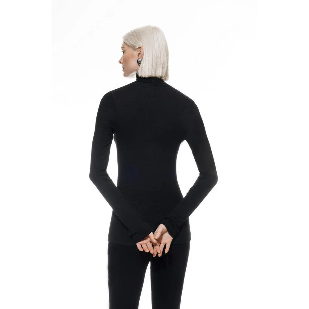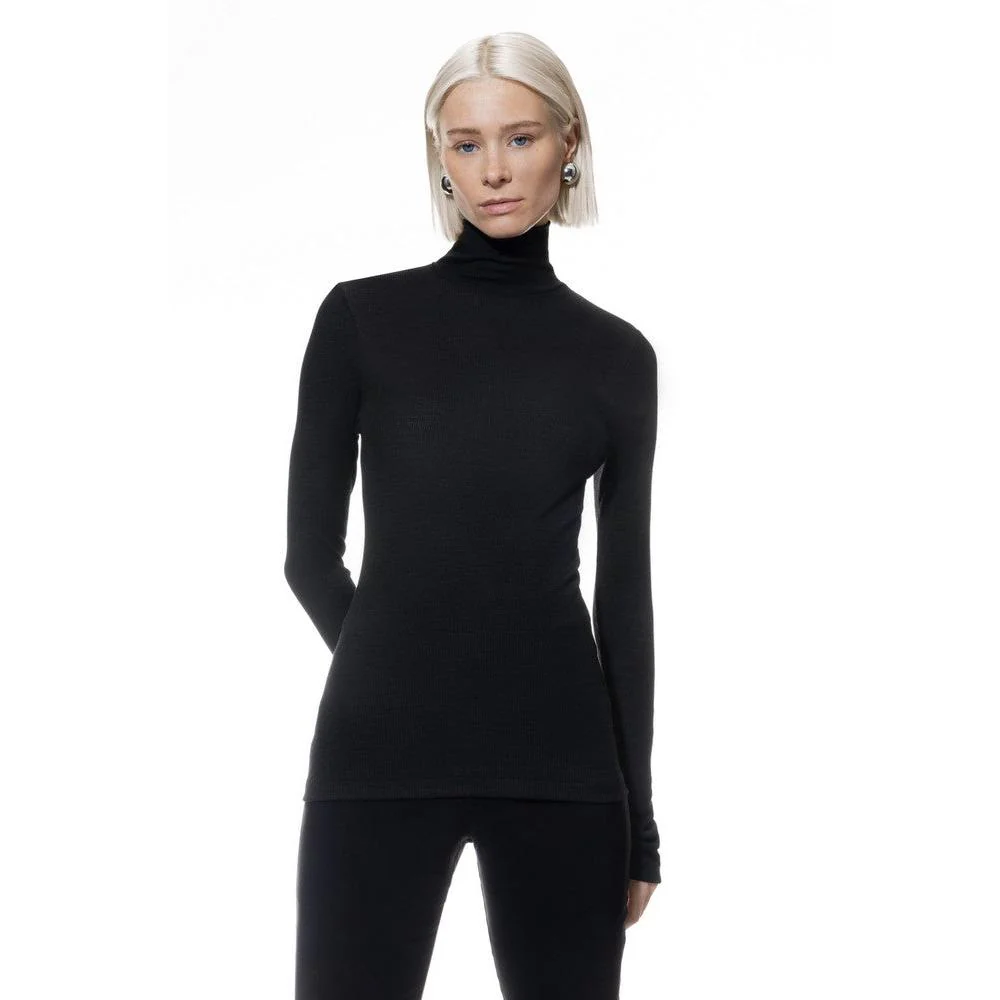 De lange mouwen en subtiele rolkraag voegen een vleugje verfijning toe, ideaal voor zowel casual als zakelijke outfits.