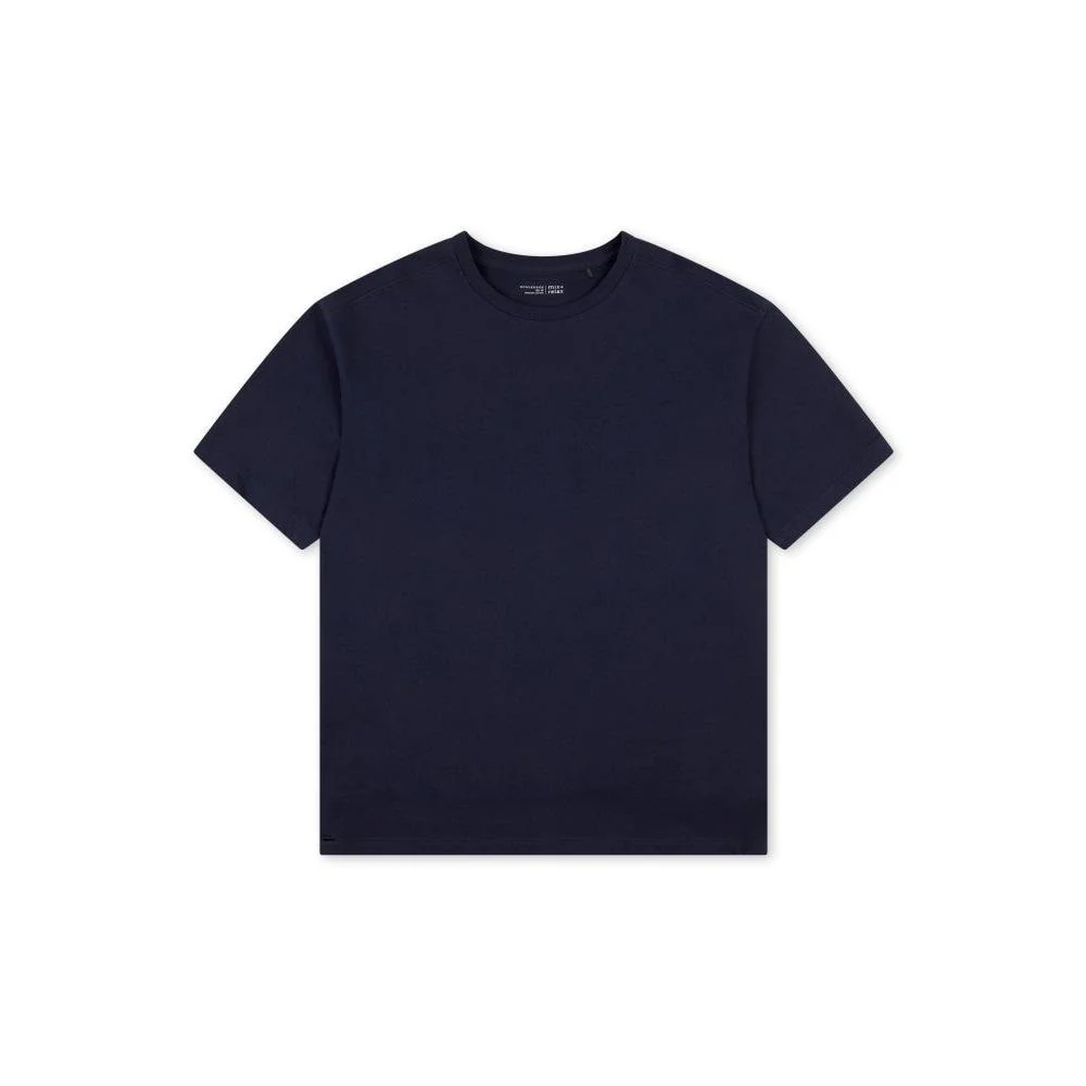 Het shirt heeft een moderne, losse pasvorm met een subtiel overcut schouderdetail, wat zorgt voor een eigentijdse uitstraling.