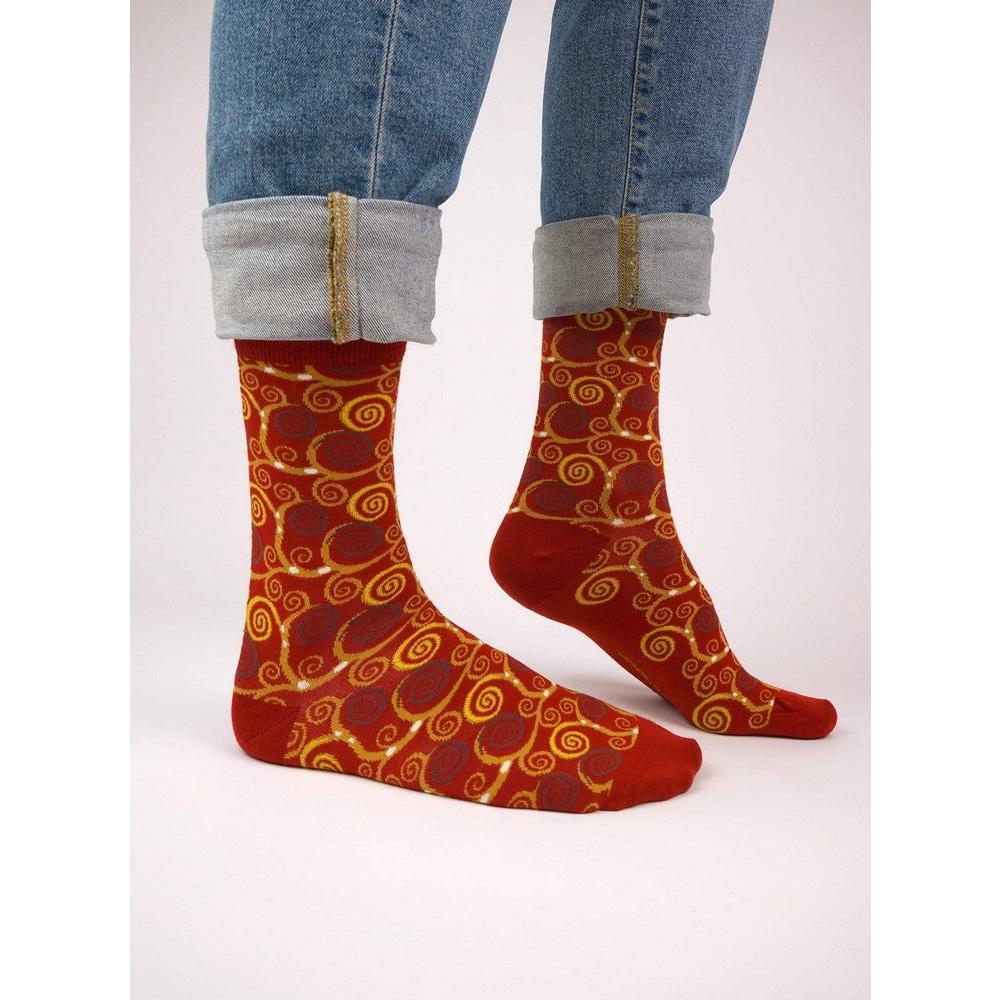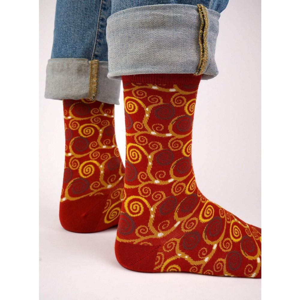 Laat kunst en mode samenkomen met deze unieke Kunstsokken geïnspireerd door Gustav Klimts iconische kunstwerk The Tree of Life.