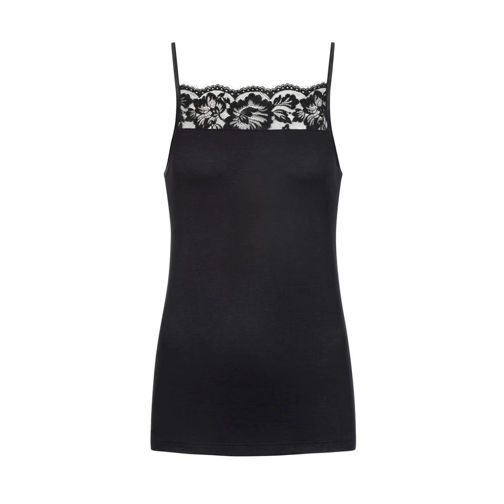 Deze top voor dames van Mey is aan de voorzijde afgewerkt met een brede strook kant.
