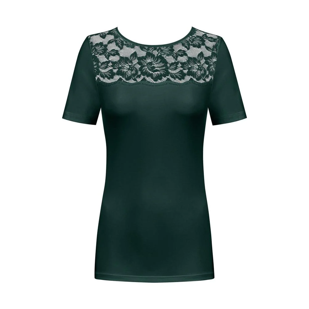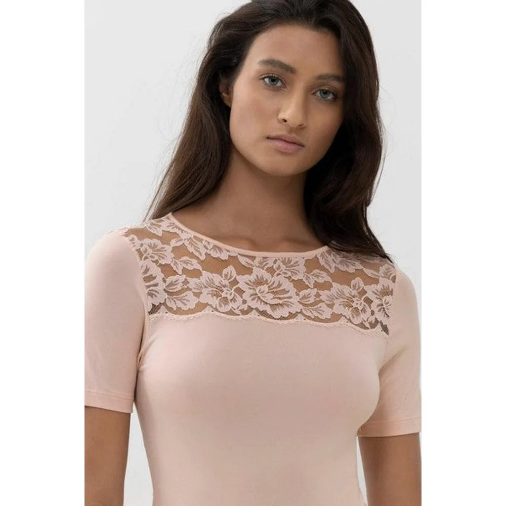 Het Mey hemd heeft ook een smalle pasvorm en kantversiering aan het decolleté, waardoor het uw vrouwelijke vormen accentueert. En dankzij het ontwerp zonder zijnaden zit het shirt als gegoten.
