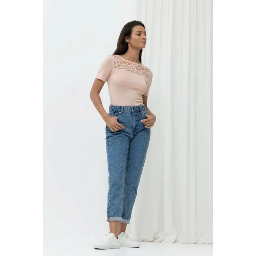Het shirt is gemaakt van een zorgvuldig afgestemde mix van 50% viscose, 46% polyamide en 4% elastan, waardoor het zeer comfortabel aanvoelt op uw huid.