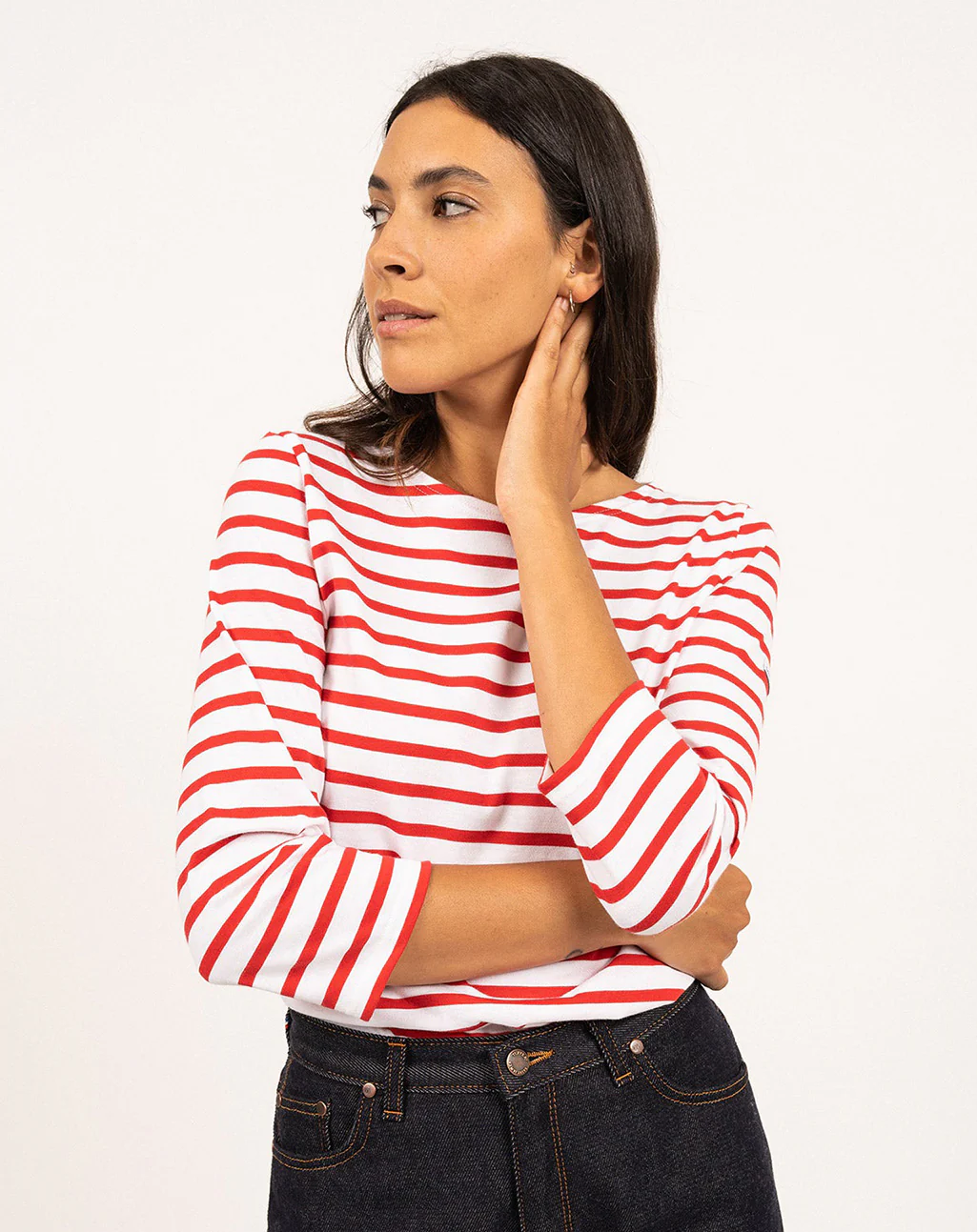 Bretons shirt met ¾ mouw van licht katoen