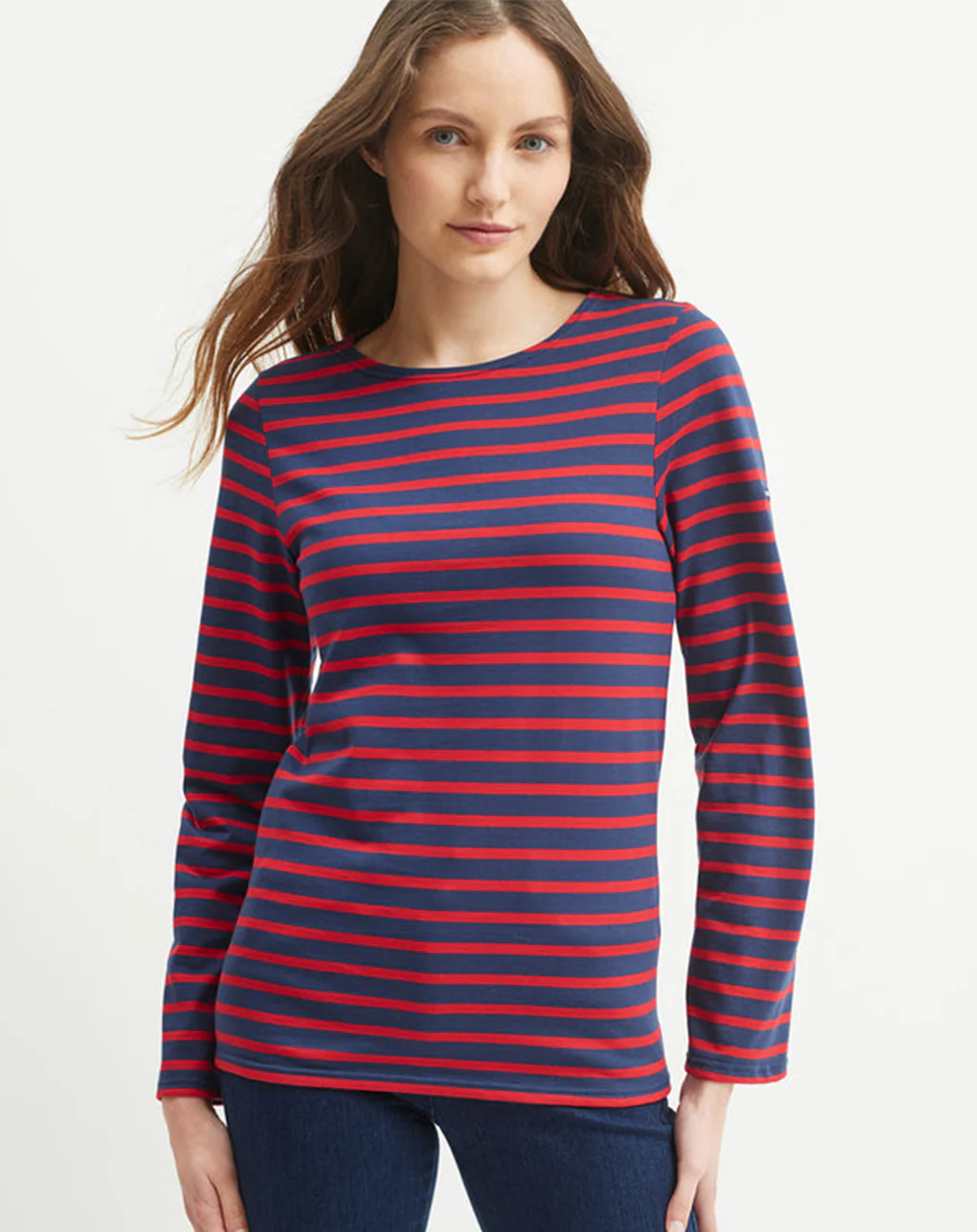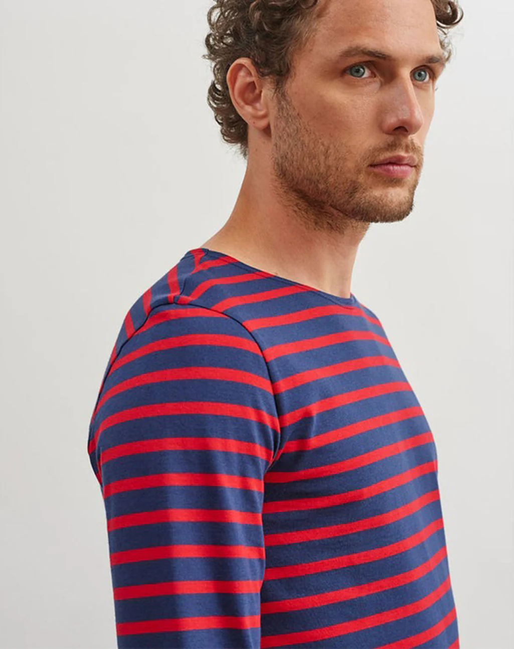 De Minquiers Moderne is hét iconische Bretonse streepshirt in een lichte T-shirt kwaliteit. Met zijn rechte pasvorm, lange mouwen en ronde hals is dit model tijdloos en veelzijdig. Gemaakt van het dunste katoen uit de Saint James-collectie, is de Minquiers ideaal om het hele jaar door te dragen – luchtig in de zomer, en perfect als laagje in de winter.
